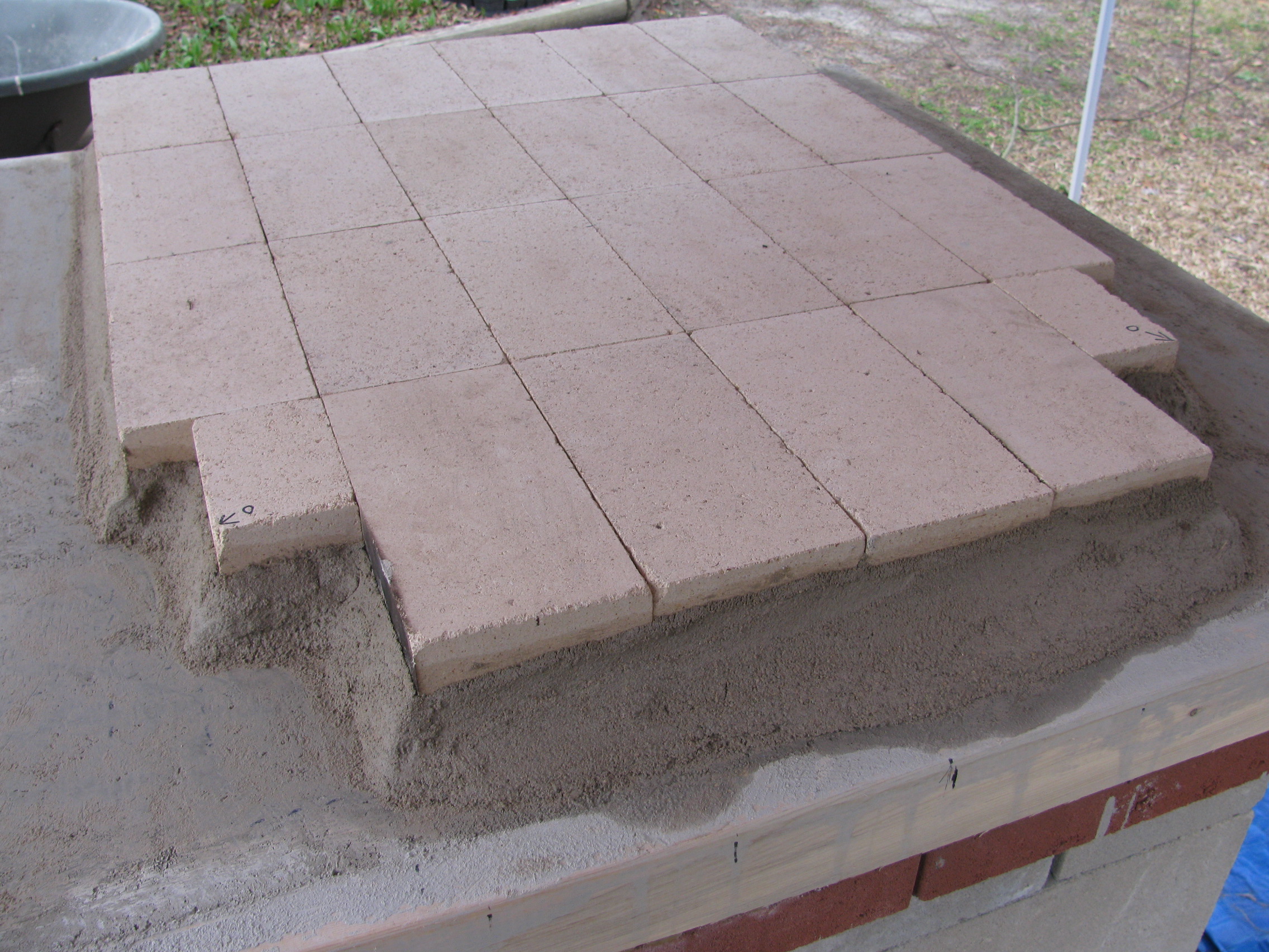 We made 3" wet bricks with a form and built the oven over packed sand one ring/brick at a time.