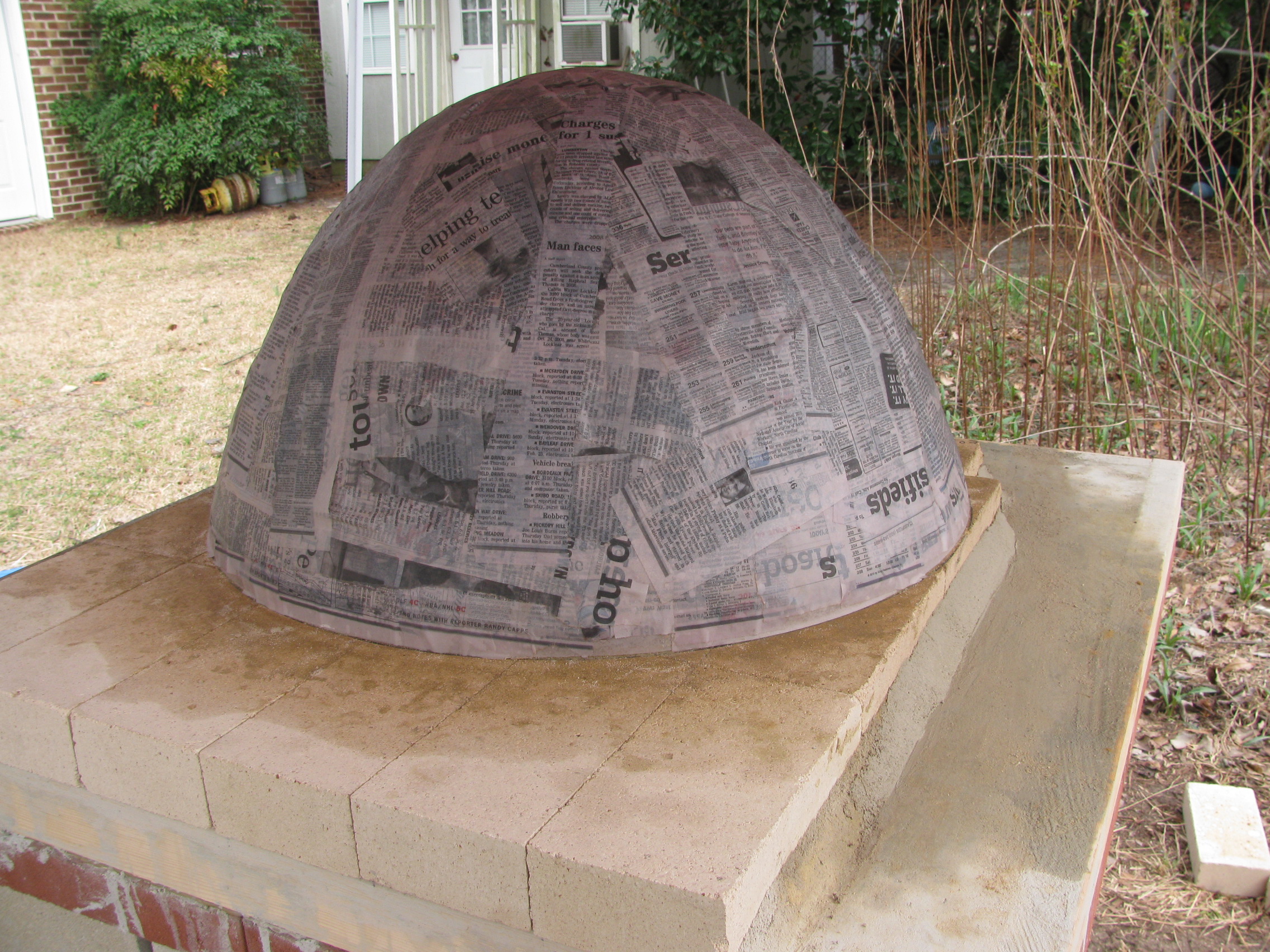 I cut the door today: 13.5" at base and 9.5" tall (inside dome is 15"). Will have more pictures soon of completed oven with cut door and sand removed)