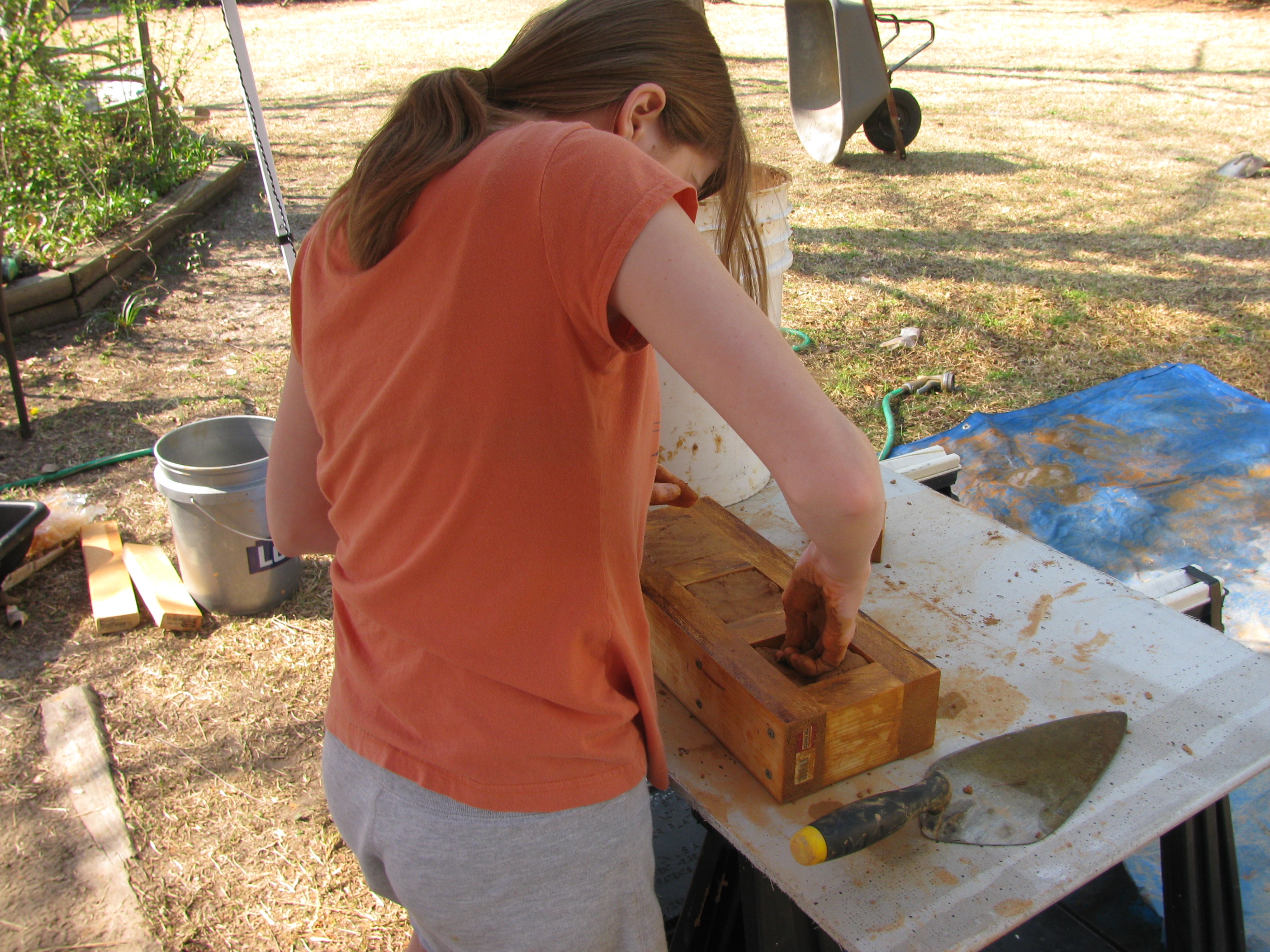 Allowing clay to dry a few days before we pull out the sand form and clean up the inside. It's been fun but a lot of work.