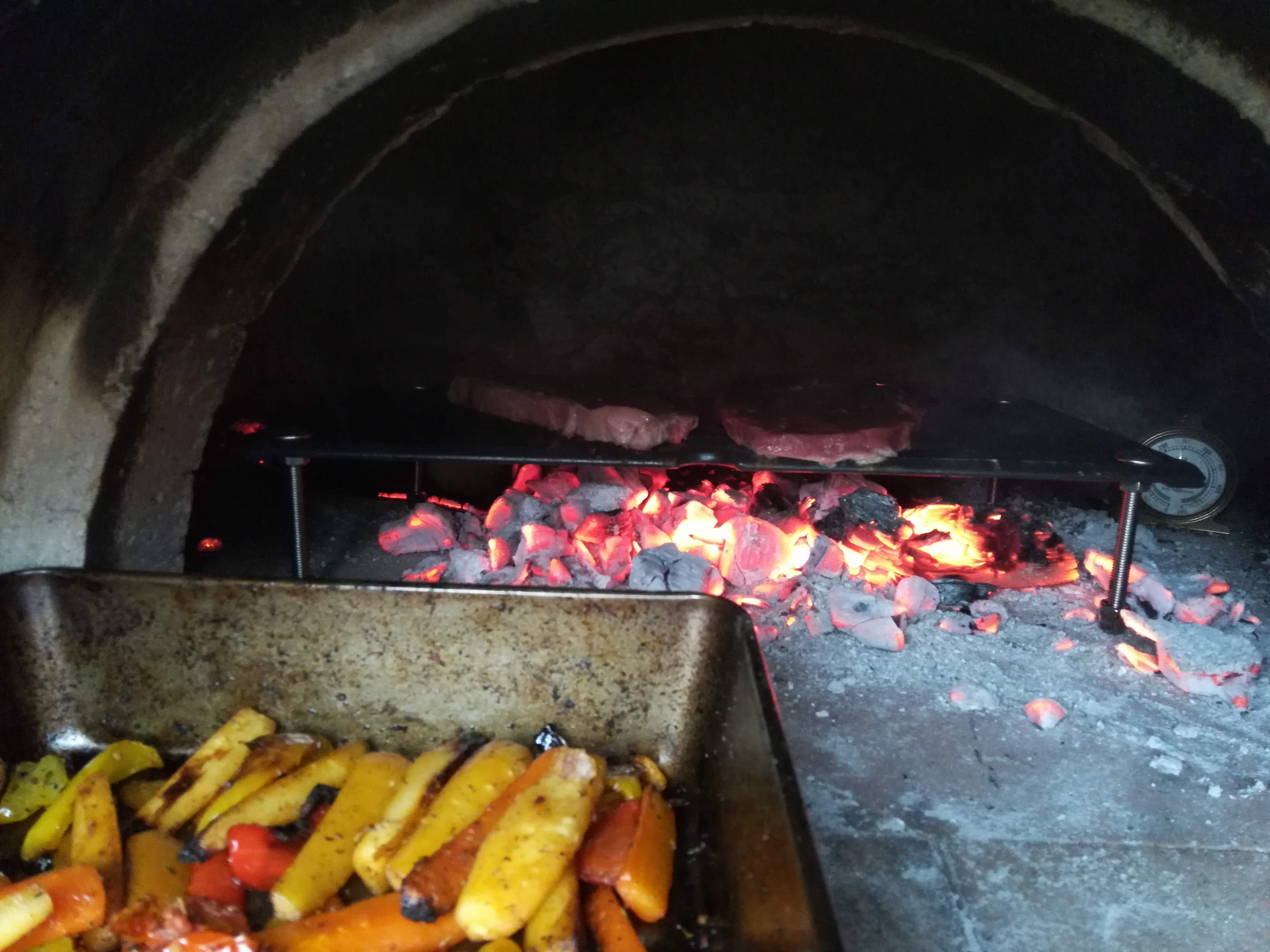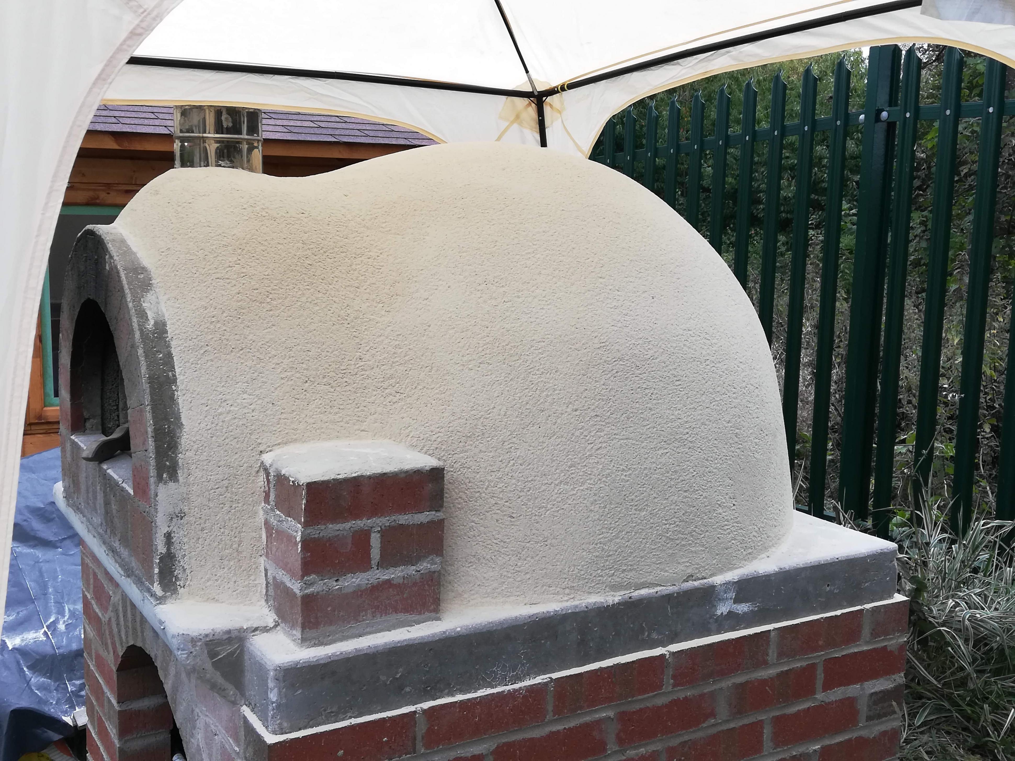 Hello all, had a bit of time this weekend to start my curing fires and build a bit of a temporary roof until I can get it rendered. Into day 4 of curing fires now and it's going well. Oven is retaining heat quite well over night. Had the floor to 200 degrees C last night, it was about 100 C in the morning and about 70 by the evening. While waiting for the oven to dry I made a door out of two sheets of steel with the edges folded back, then filled the gap with about 50mm of 10:1 vermicrete. Door is functional but a bit crumbly so I'll probably fill round the edges with a bit of a stronger mix to keep the vermiculite in.