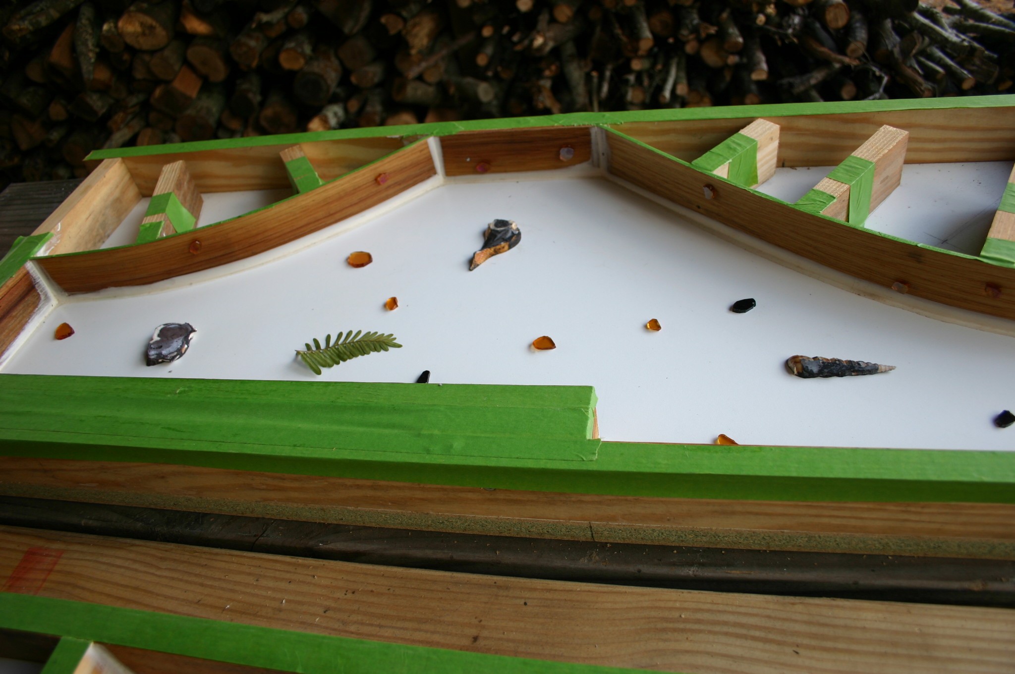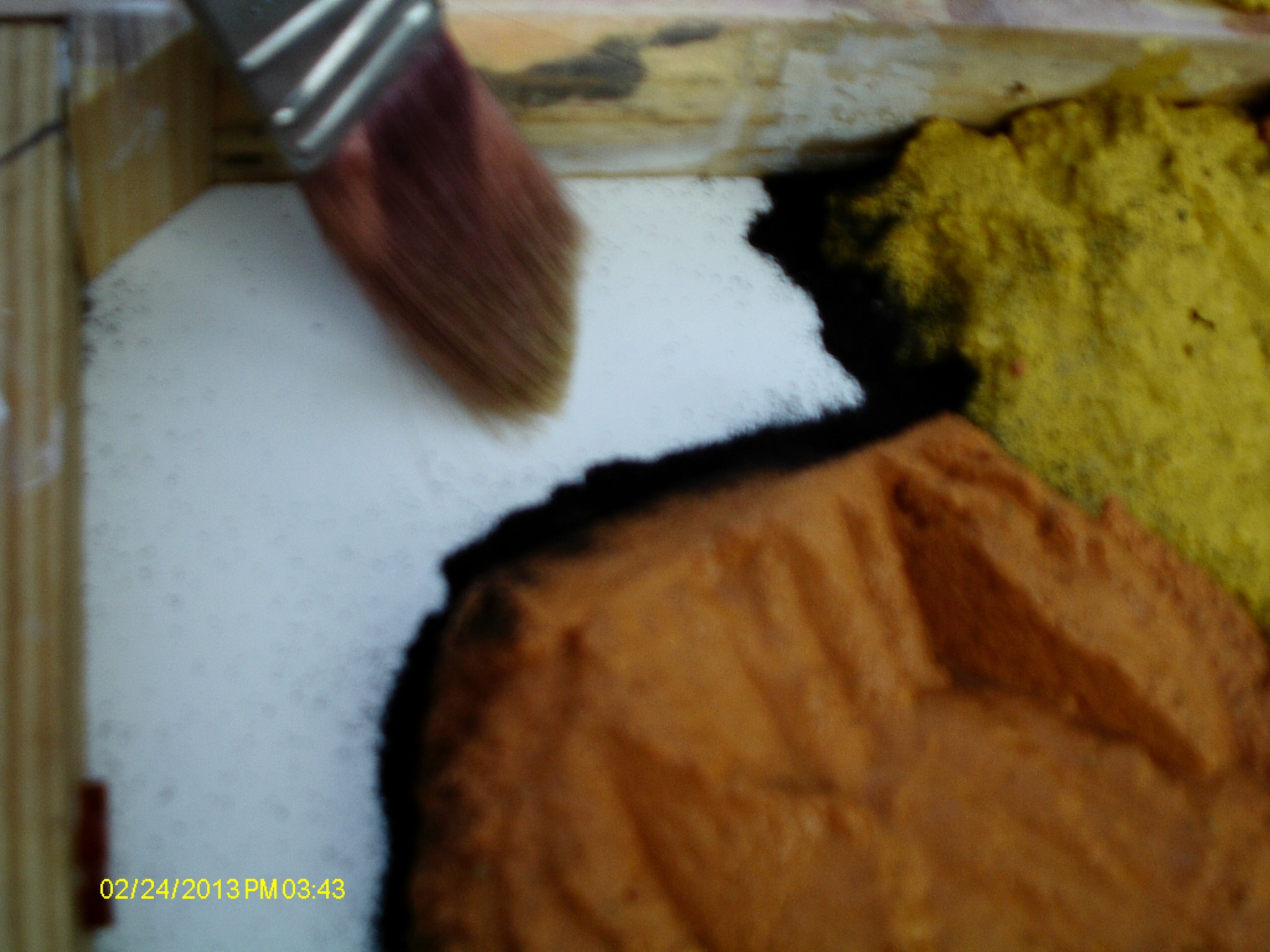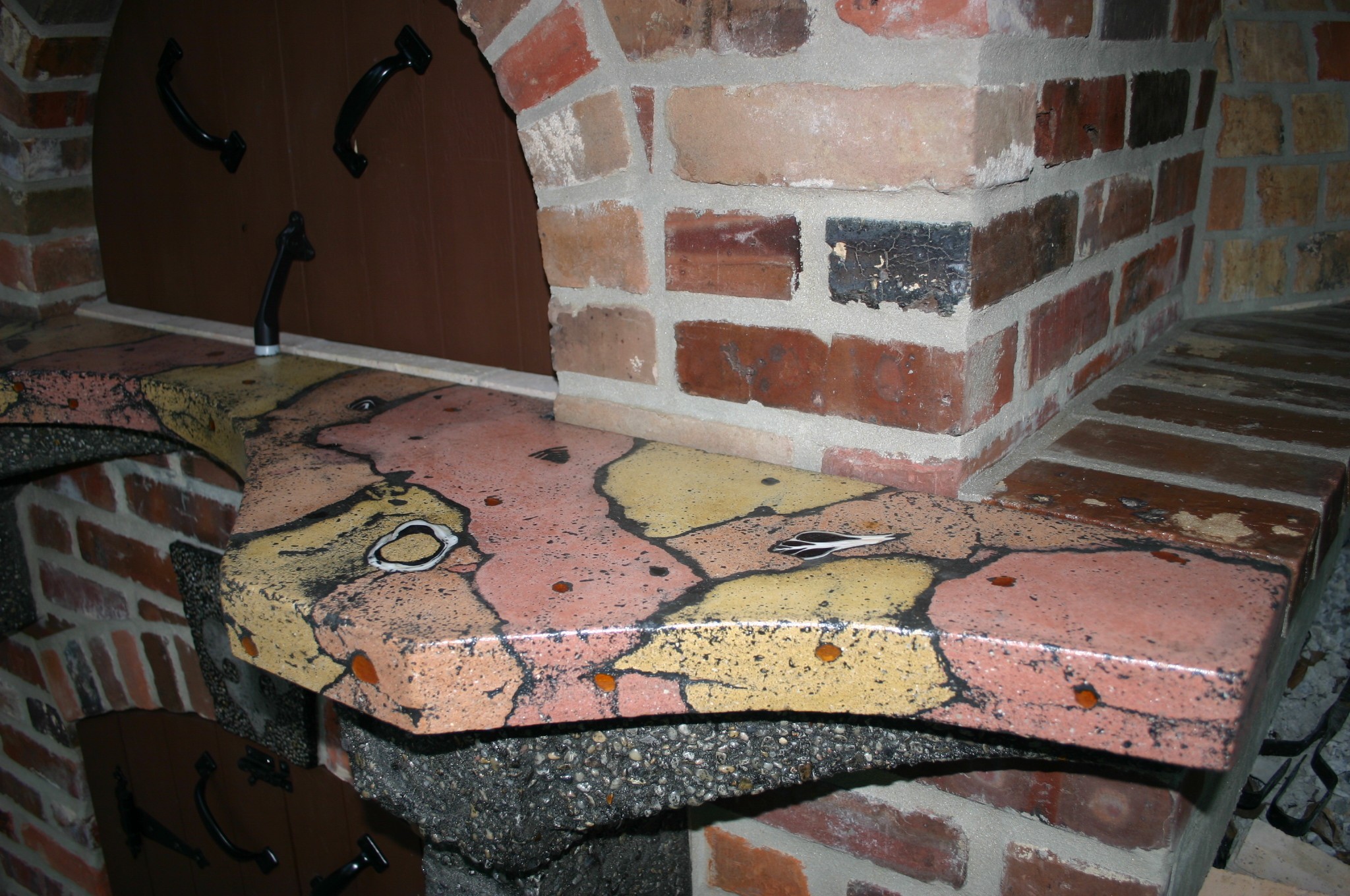 Thank you very much. Note that the form is upside down. I mixed 3 colors of concrete pressing them in to the form randomly. I placed a small ridge of loose black sand into all borders before adding the next color. (The trial run in the first pic is looks a little thick) I just wanted to create a very slight void between the colors at the very surface. The last pic is after the piece has been removed from the form and cleaned. Most of the loose black sand has been removed from the borders creating thin tapered voids. These voids along with all the other purpose made and natural occurring voids are later filled with a charcoal colored slurry before polishing.