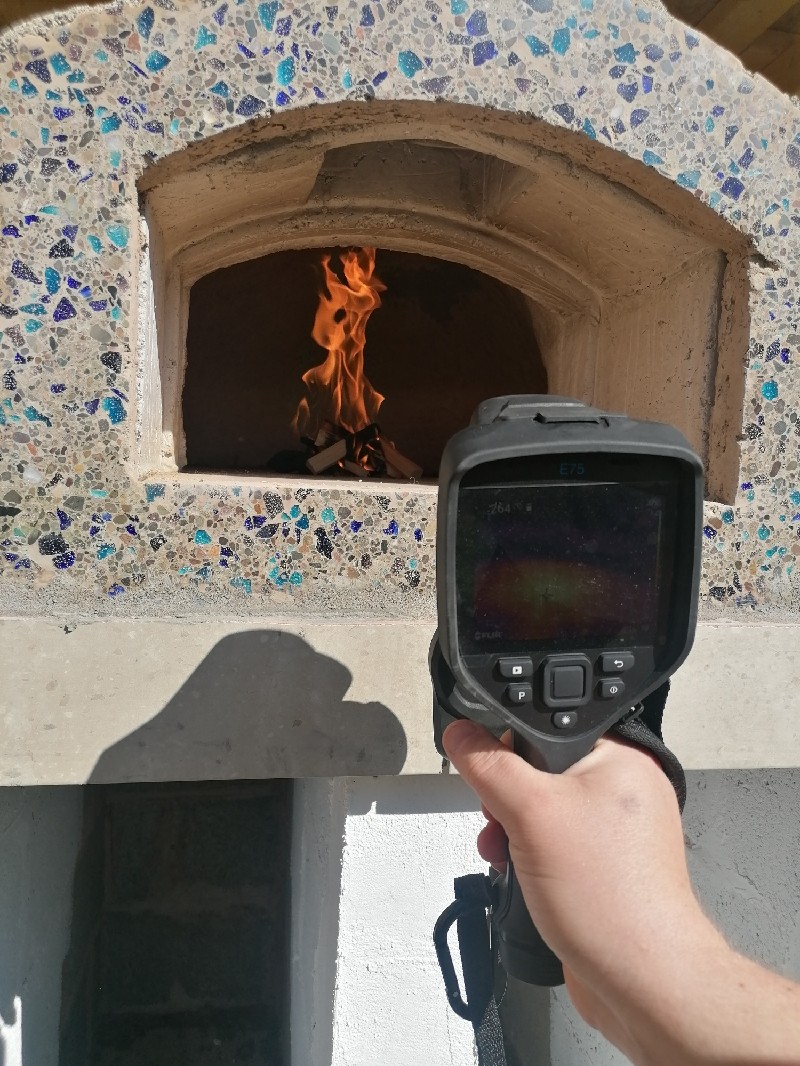 think they expected more than a wee 5 minute flame, but internally the oven has no cracks and all good on the outer. My friend brought his super expensive structural engineering thermal imaging camera round and reckon it got to around 230-250 degrees celcius at the top of the dome. Flue worked well and happy, just gutted my pristine smooth round grey internal is now black and carbon
