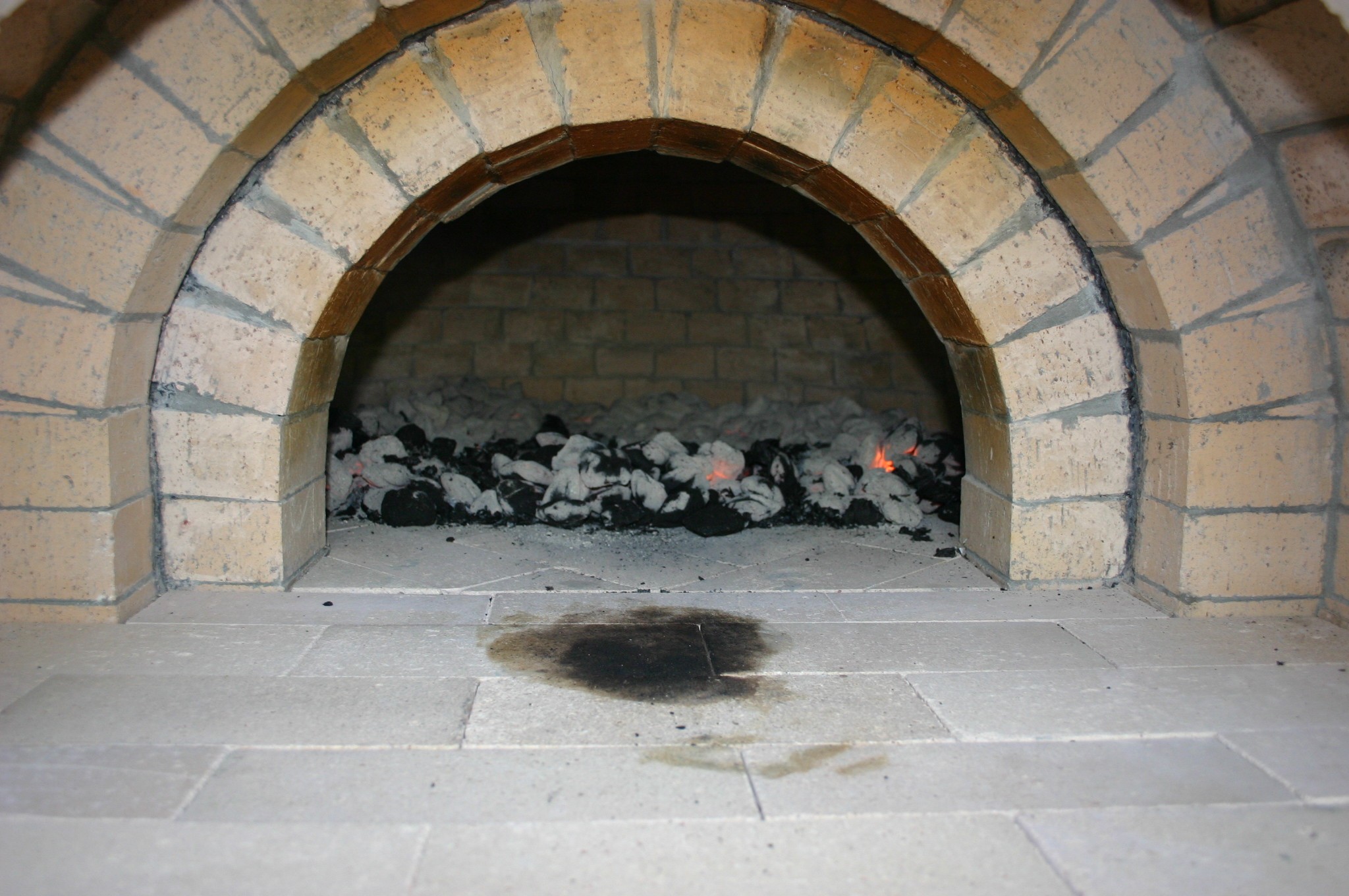 It takes a good bit of charcoal over many hours. Once the oven starts to warm, you can start placing fully started piles directly on the floor, working from the center outward. When you reach the first days target temp and time, let those coals burn down, block the door and close your damper.