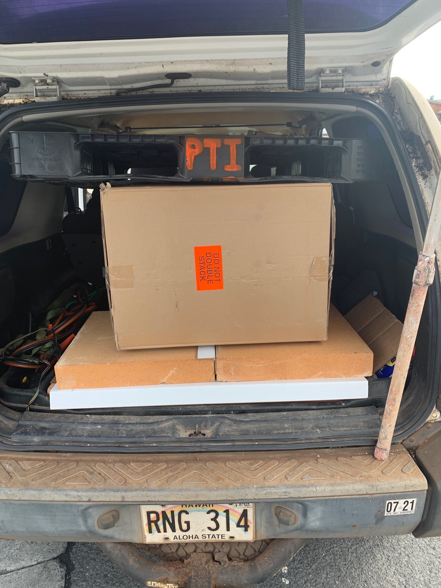 I made some progress today... I went into Honolulu to pick up my fire bricks and fire blanket from the dock.... holy cow 18x18x3 fire bricks are heavy... wow,,, but all the bricks made it in one piece from Los angels to Honolulu (1 week), no cracks or breaks... I ordered 1 extra brick just in case one broke in shipping... so now I got 1 extra 18x18 brick to work with...