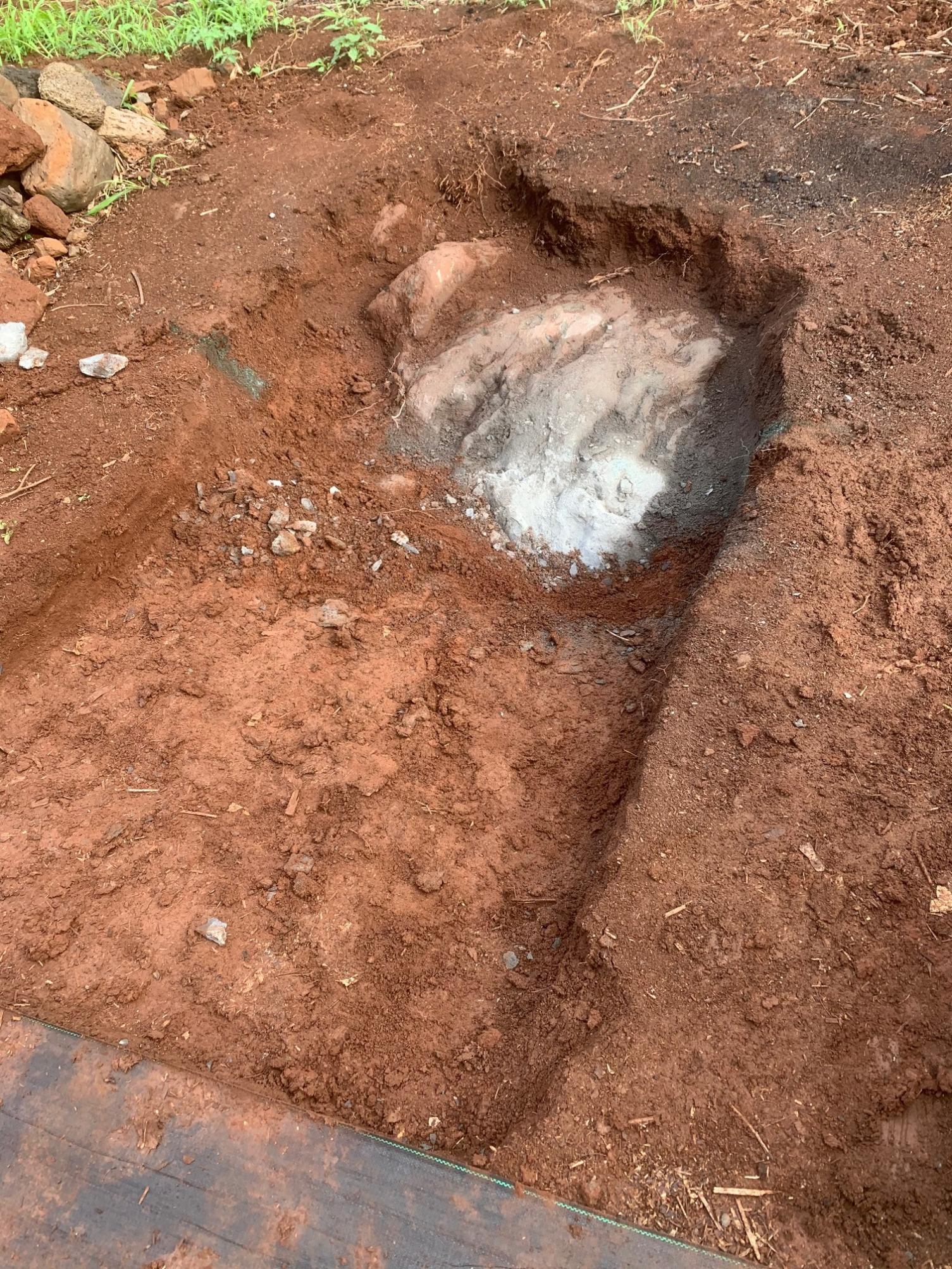 I bit the bullet on the concrete slab and cinder blocks walls... I’ll be going with the classic u shaped block wall over a reinforced 5 1/2 inch slab.. all the cmu and concrete is on site.. I had to do a lot of digging to level the hillside area and in the process as you will see in the pictures I hit a vein of basalt... if you are wondering about my soil content it is heavy hard Hawaiian red clay... I swear you could make bricks with this stuff.... ad sand and straw then bake... Adobe... and under this red clay is a slab of basalt... the rear wall is somewhat of a retaining wall and I’ll do some kind of waterproofing to the cinder block as well as install some drainage around the u shape before back filling and installing the final rocks...