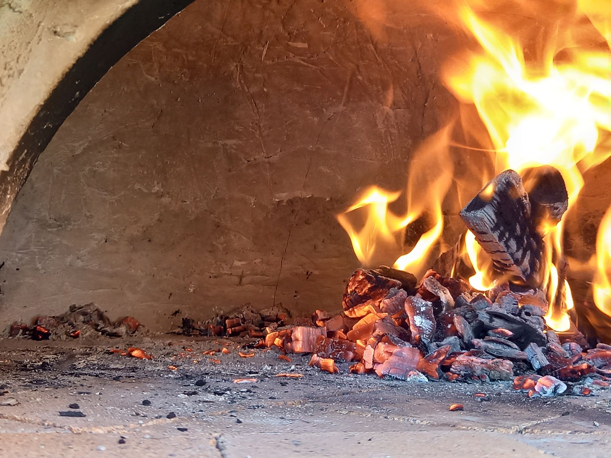 So I decided to move the coals to the other side and build back to flames so I could bake pizza’s at the other side where the floor would be a bit hotter.