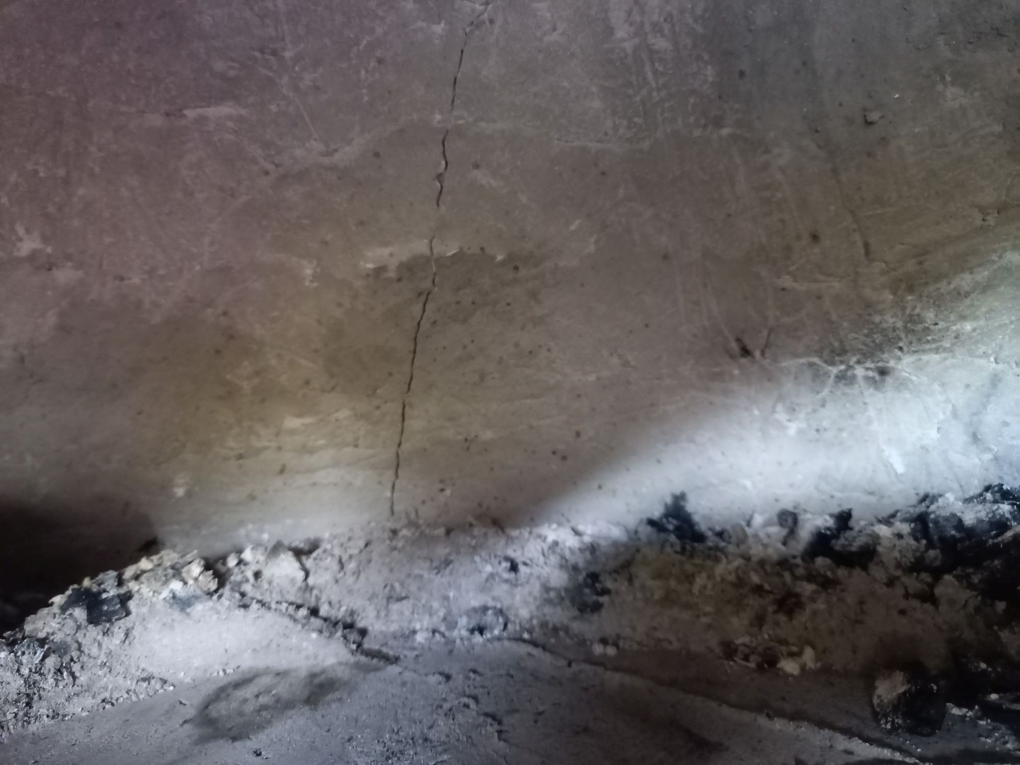 after that it seems there a thin hairline crack running the apex and joining a small crack which goes almost to the bottom again ending right of the entrance...