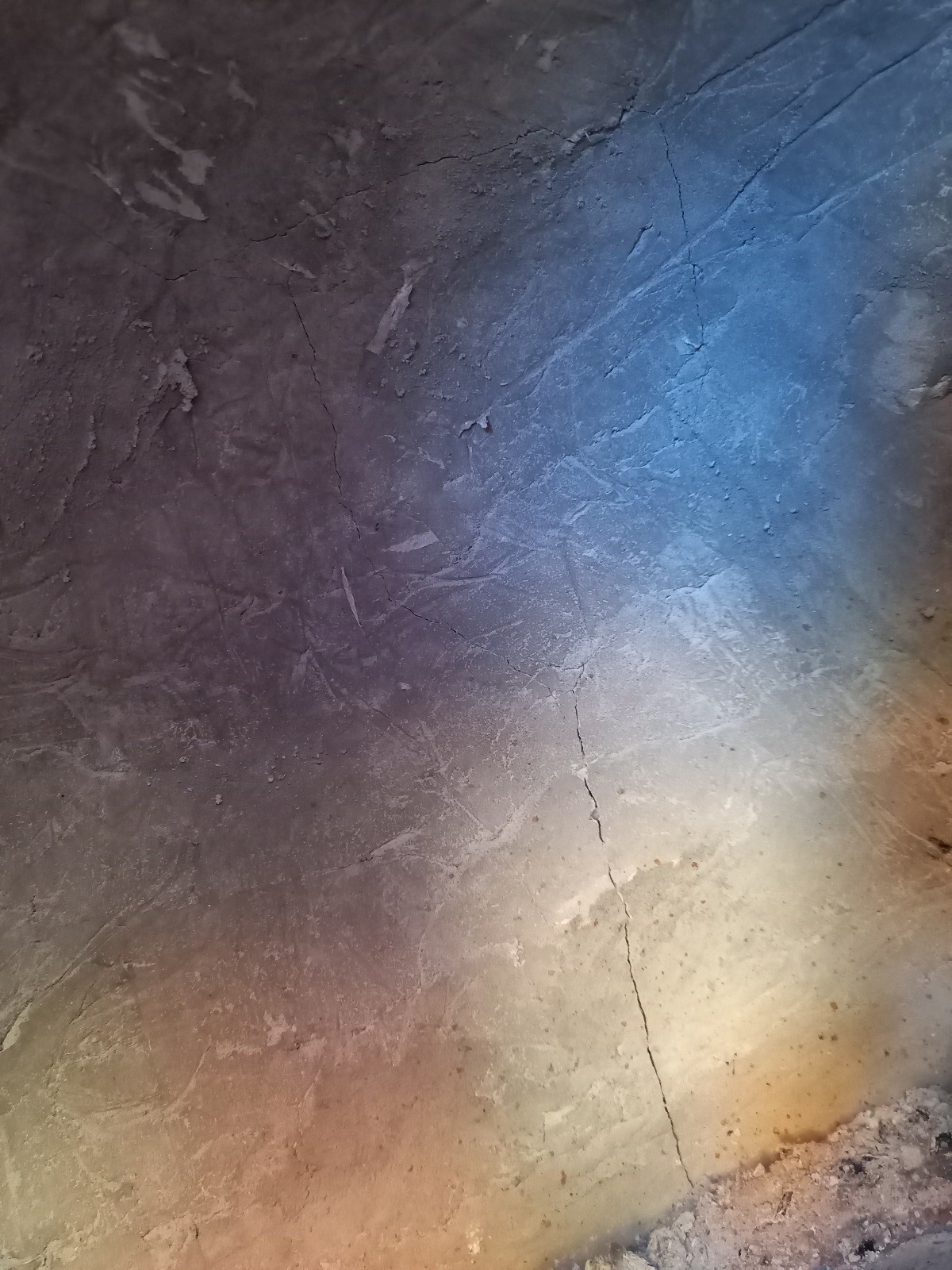 it gets thinner the higher it gets and about 2/3 up it splits in two with both cracks going around in a square patch the size a of hand and then rejoin again. (I think the hand sized patch could be the same size as the lumps of homebrew I used to make the dome, so maybe it could have been the last lump of a batch which was maybe just a bit dryer than the rest?)