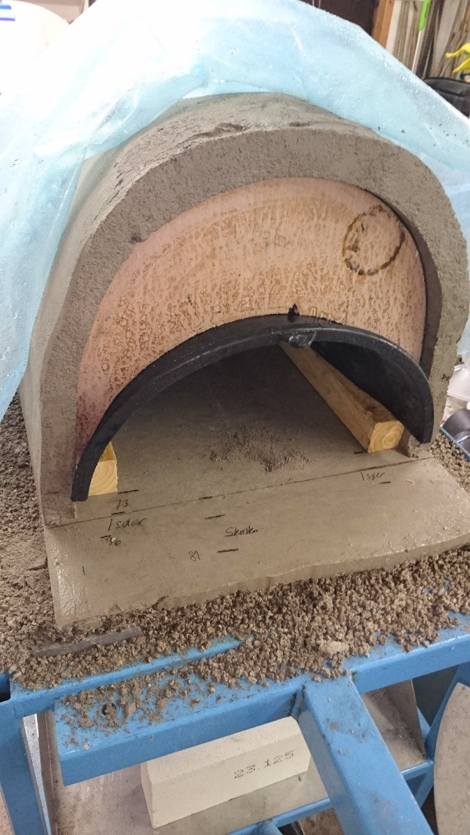 I got help from 3 hungry neighbours to lift the oven into position and started the fire the next day (today actually). 200-300 C top dome temperature for 8 h. No steem, cracks or so. Increased to 500-600 C over next period of 4 h. Everything went very well. Two small hairline cracks on the inside of the opening where the 2 mm homebrew layer was. I have not noted anything else. Not in the dome or on the outside. Very pleased with that so far.