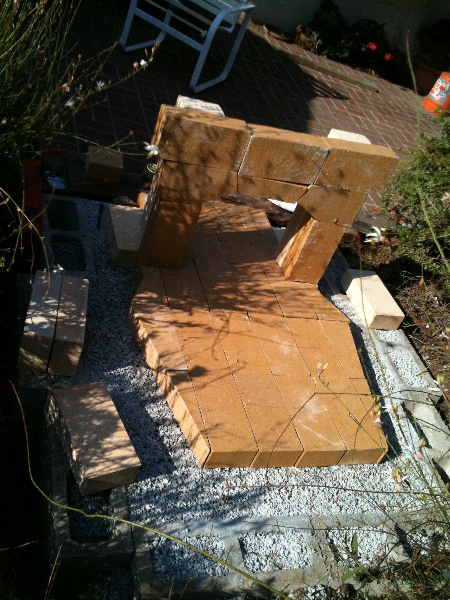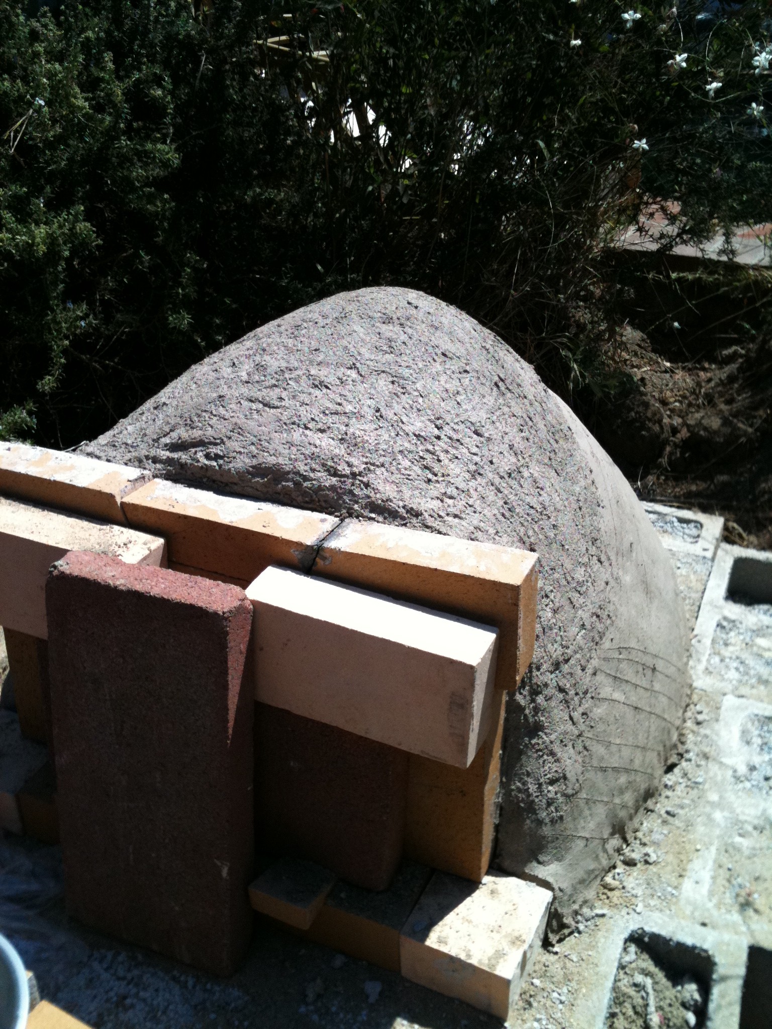 Here's some photos from my previous build. I built it into a low planter, which I love. I can sit with people, eat and cook all at the same time. Works great for my life. Only problem in the original build was that the dome sank a little, so I had to lose the nice arch for the door I built. And this time, I want to add a chimney and push the oven lip closer to the edge of the planet area.