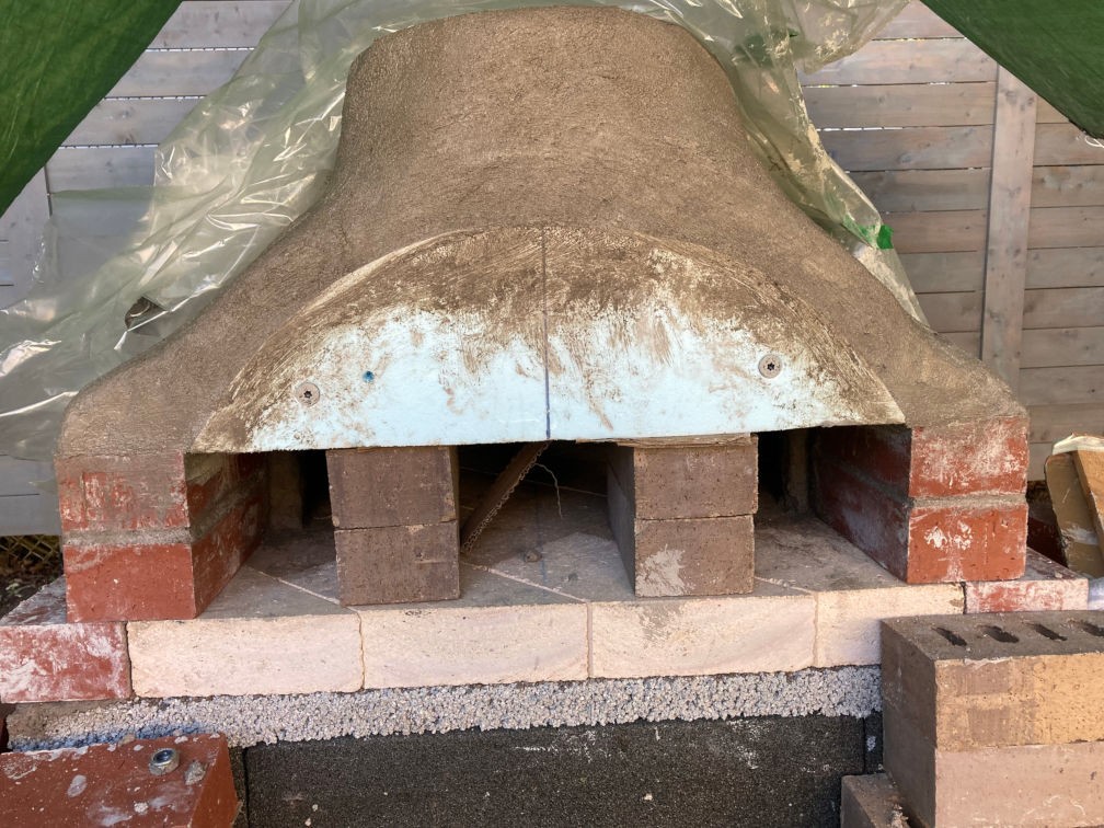 I have started doing curing fires. Once I complete the curing fires I plan on placing a brick arch in the front, and placing the stucco layer.2 Photos