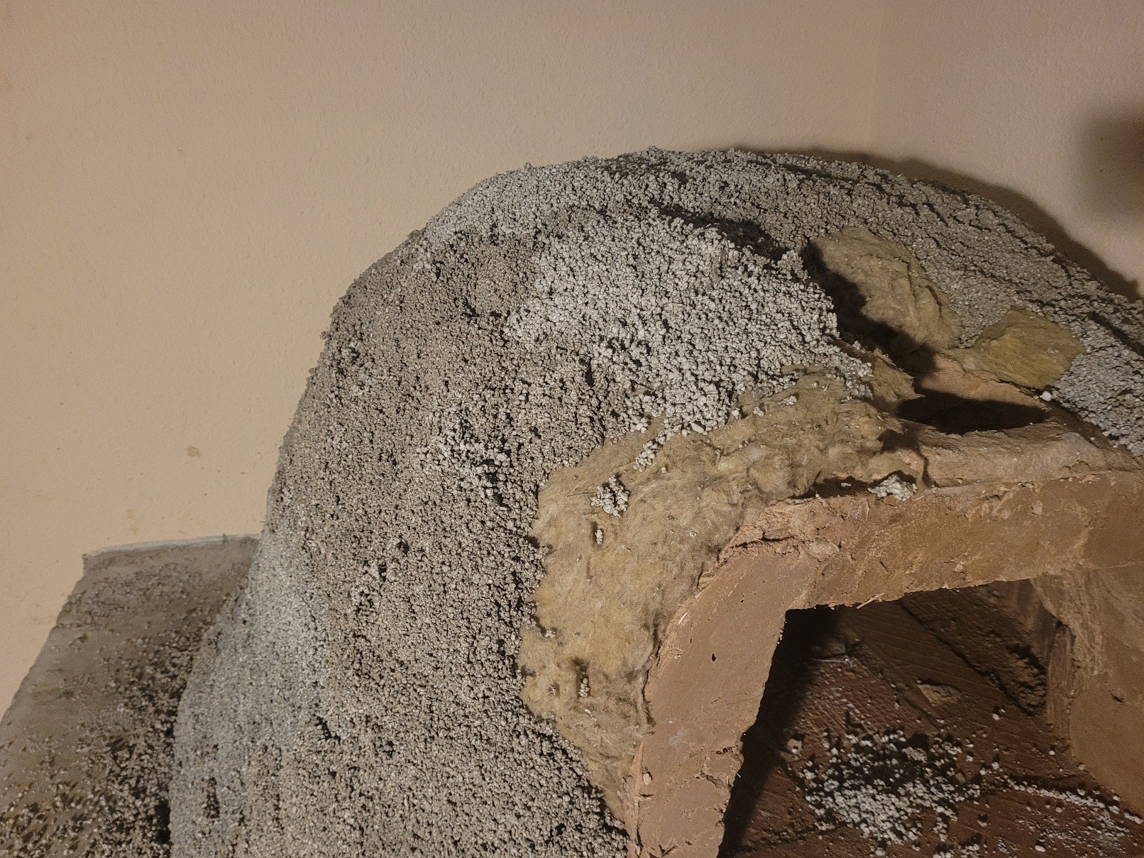 It's been a week since the cast. I added the insulation yesterday and a few inch area to build up the perlite cement, I added another layer today around most sides, I'm approaching limit of the walls near me so will be thicker and more insulated on one side and top vs other side.