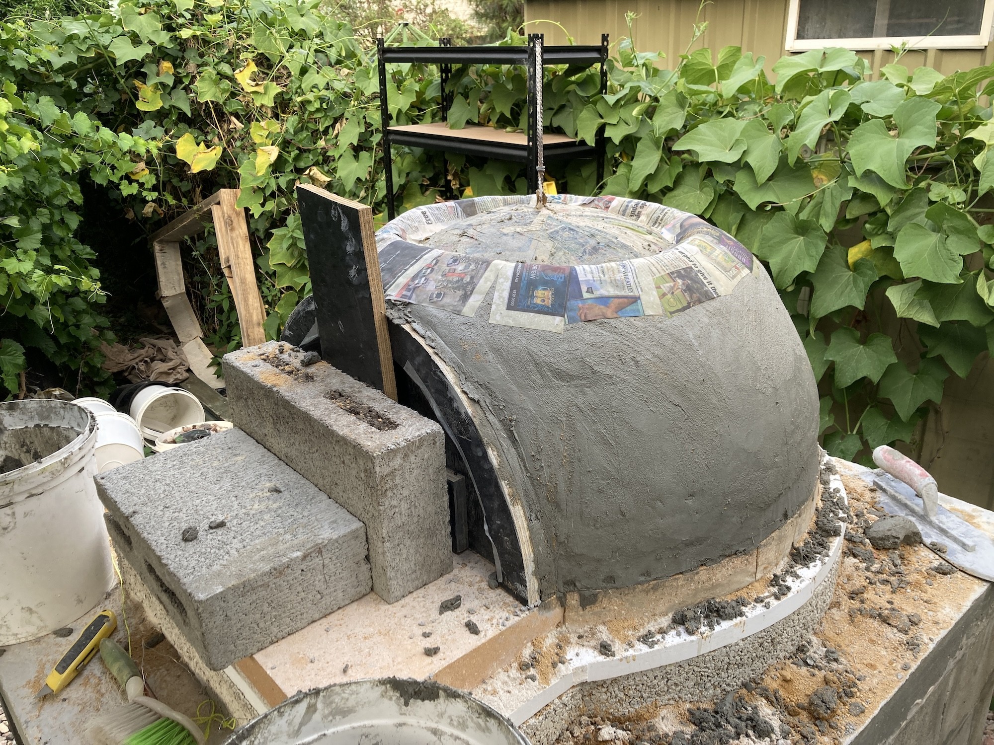 We are a few weeks into building our homebrew dome oven, and just finished the foundation.