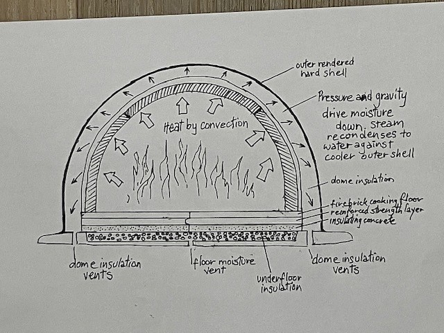 50mm thick inner dome, cast using heatproof screed (planning to use this product: https://www.vitcas.com/prd/heatproof-screed).
