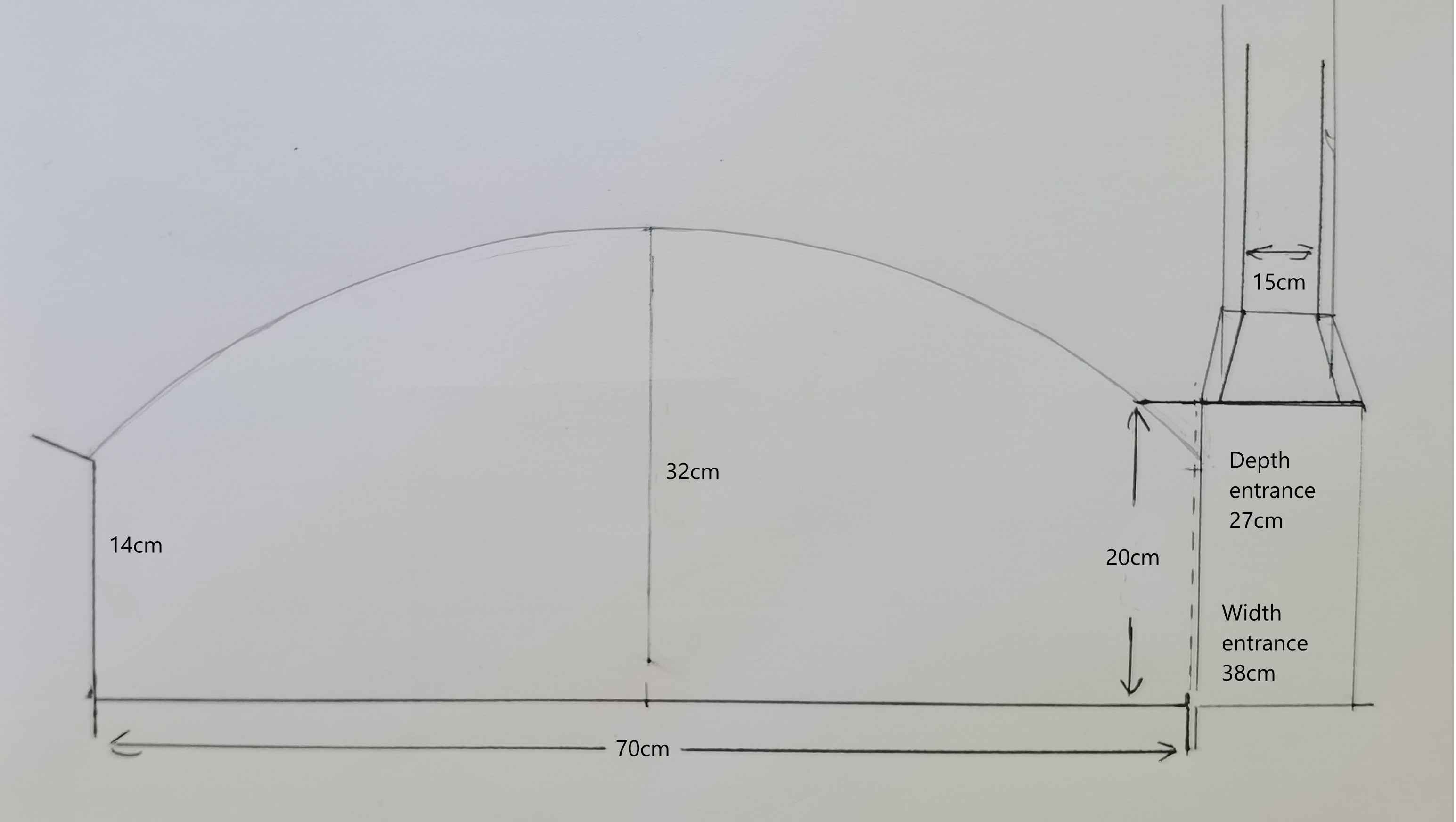 My tentative plan is to build a 31cm dome wiih a 14cm soldier course and a 19cm opening with a width of 38cm.