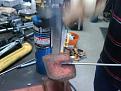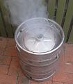 The lid was aligned with the keg and taped up with strong gaffer tape. 3 tabs were welded into place, equally spaced around the keg. This was all fairly strait forward.