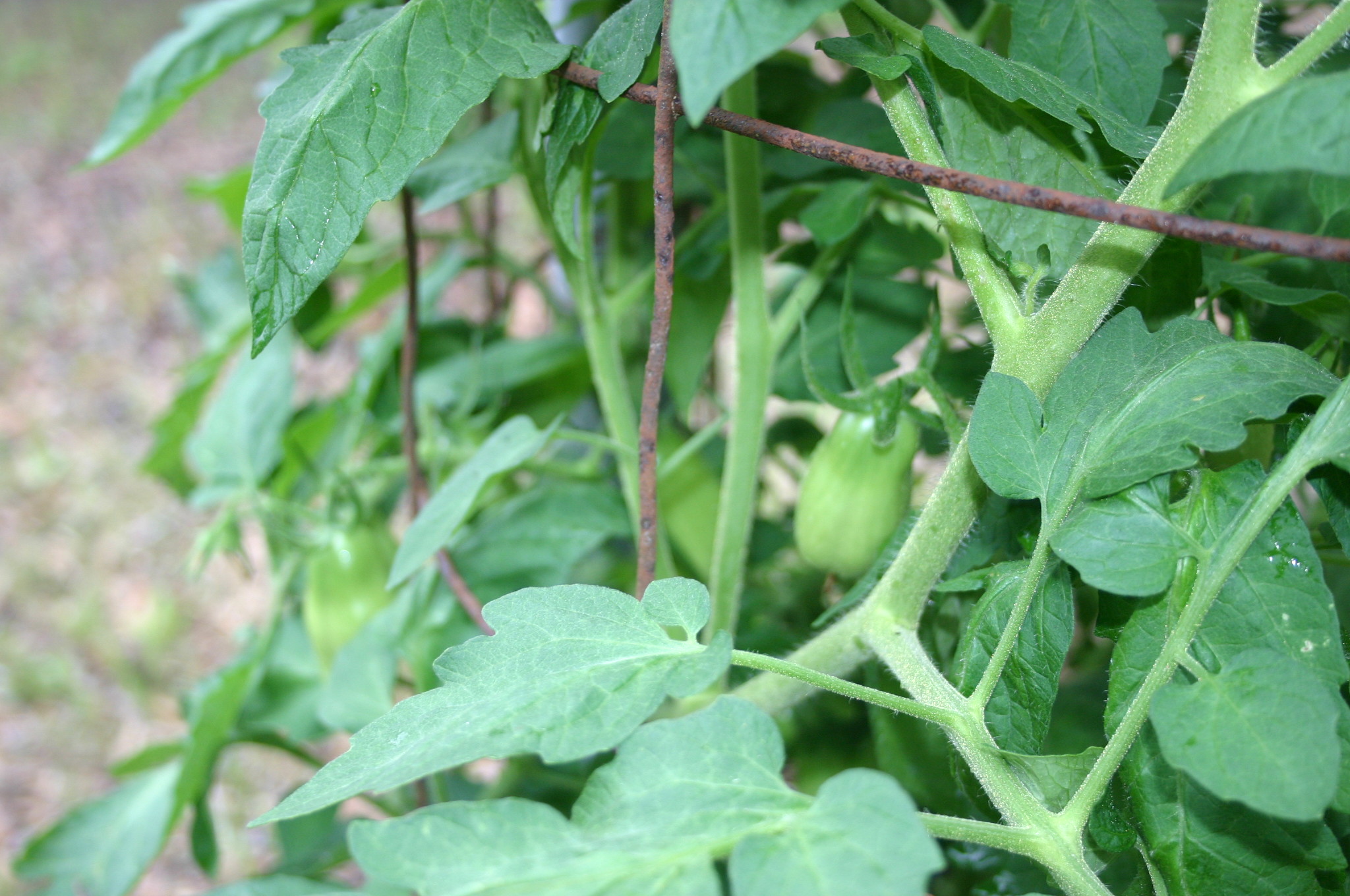 Our growing season is well under way. It is already hot down here, so the maters have really taken off. I have a few that should ripen in the next couple of weeks. I have several plants set out in various ways. Here are two that I am training to grow inside concrete reinforcement wire. Hopefully, without having to tie them up .