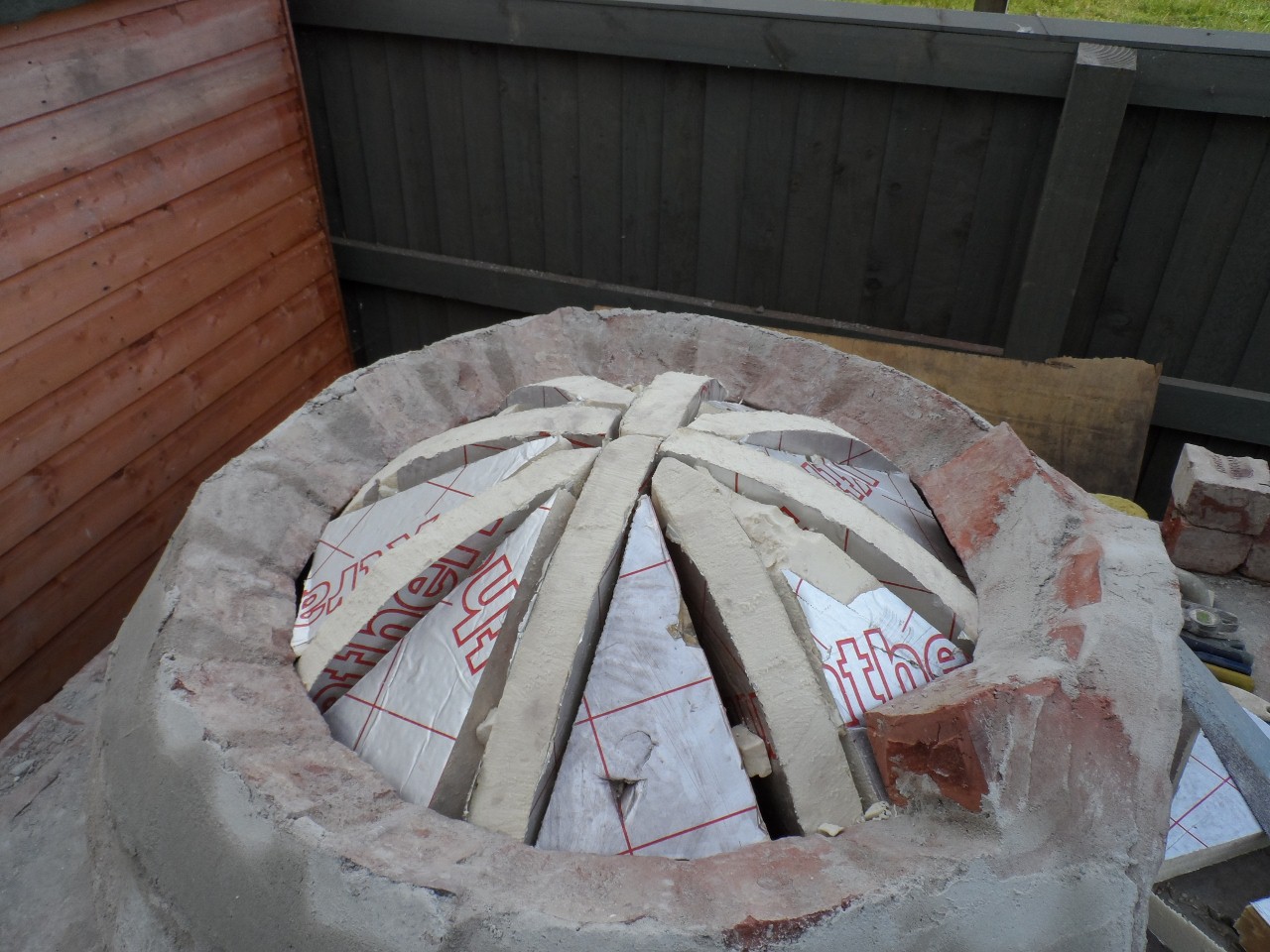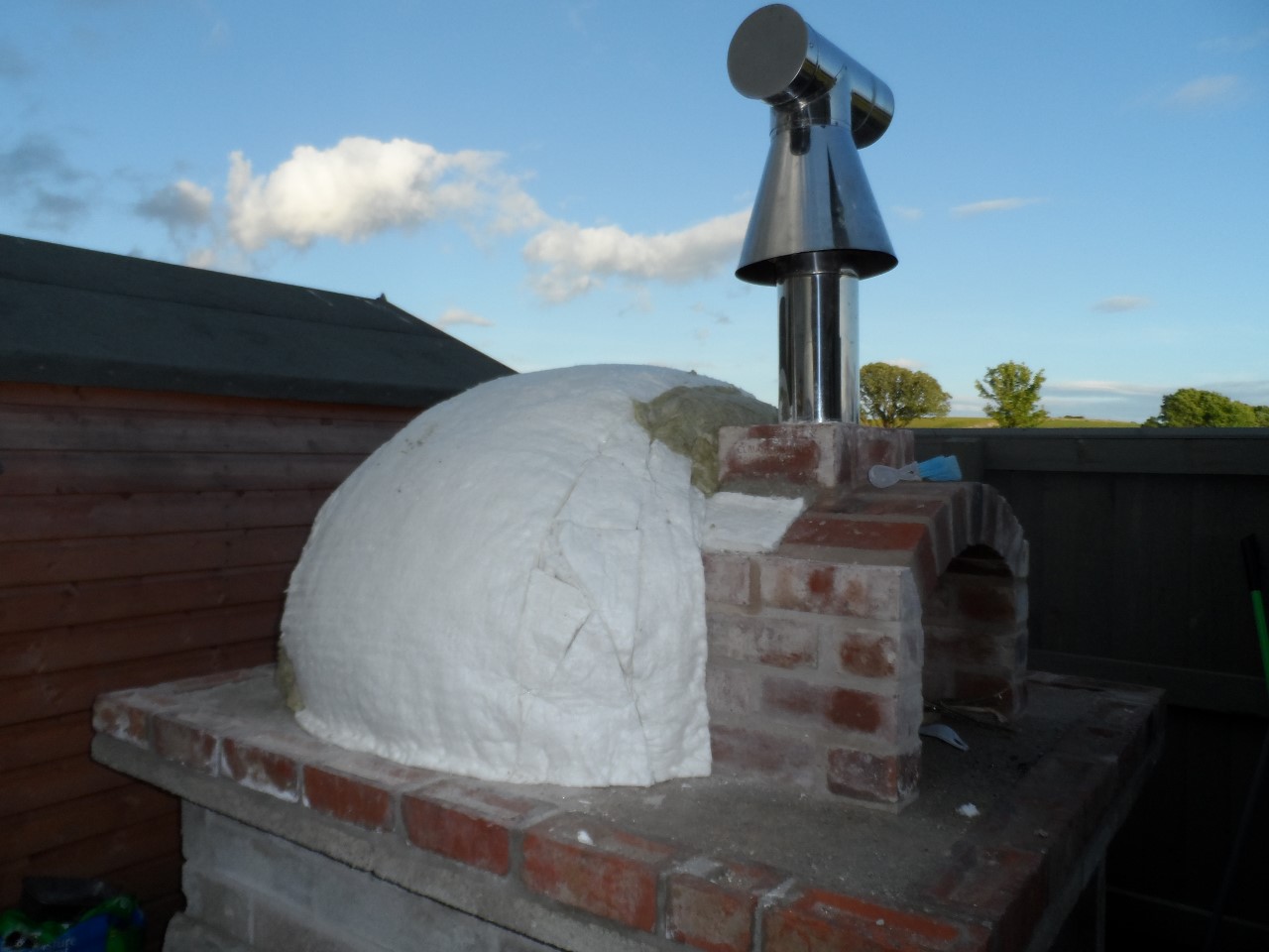 tonight i have insulated the dome, not as bad as i thought it was going to be! i ended up cutting triangles out and the pinning back together with bits of wire, worked rather well! ive got 4 inch of ceramic blanket, the last layer is abit patchwork in places and i had to use a little bit of rockwool to finish off as i had used every scrap of the CB!