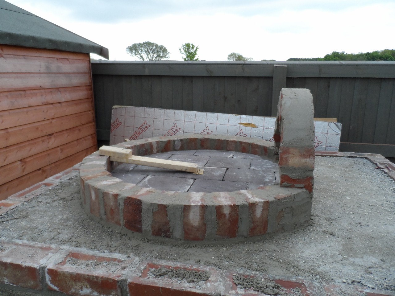 a few more pictures! got the floor in today, the arch built and the first course round. i went for a half soldier course for the first course as i thought a full brick was too high.