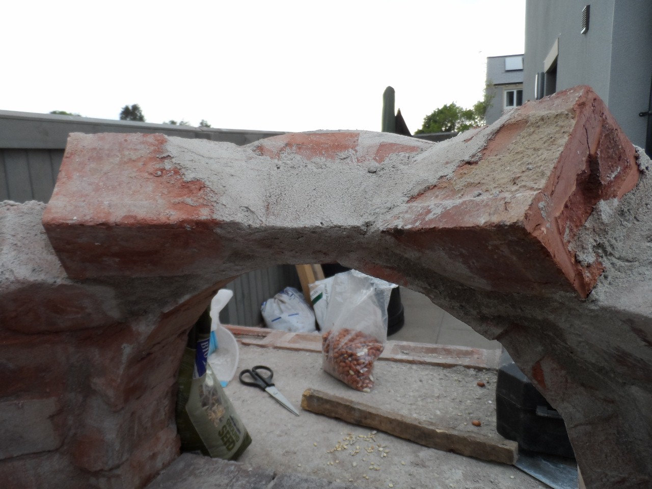 the next tricky bit i'm thinking is going to be the transition over the arch!! i can't quite get my head around it yet but, i think it will become more clear when i get up there. i will have to cut the angle off the back of the arch bricks in situ as i didn't know what angle or how much too cut off them as i was building it