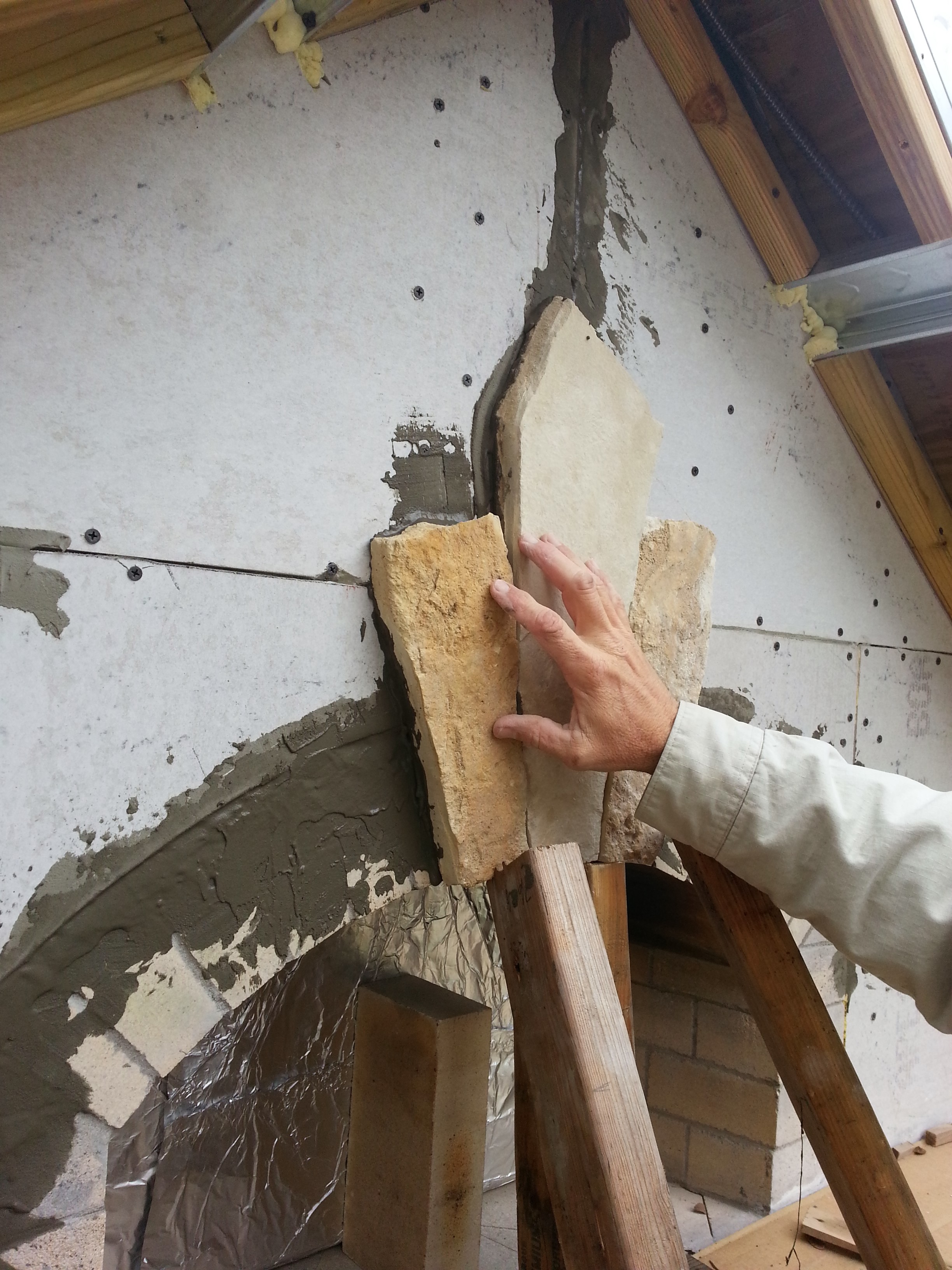 Tom, I went ahead and stuck the stones to both the firebrick arch and the Hardi Backer. The thinset Im using is FlexBond and is supposed to Flex a tiny bit. I figure if it cracks due to movement, I can make a repair easily