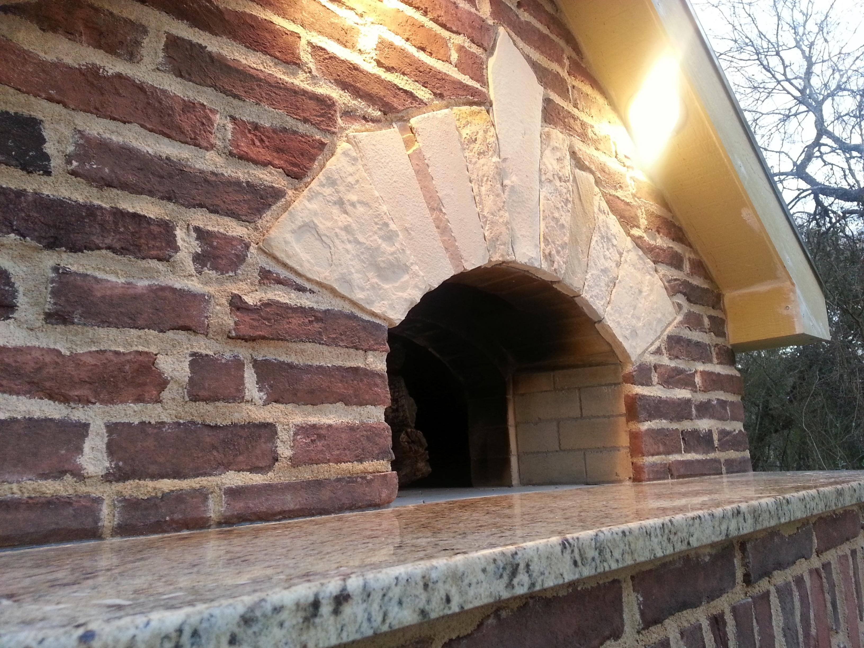 I scoured our premises for an appropriate piece of make shift equipment for pointing the dome of the WFO where i messed up laying the top couple of dome courses. Came upon my wife's cake decorating set in the kitchen. Hey, that would work great I thought to myself. What a look i got when i told her what i needed it for..if looks could kill. I ended up curling up a heavy duty zip lock type baggy with the corner cut off. It worked fine and i didn't need to buy her a new cake and cookie decorating set!!