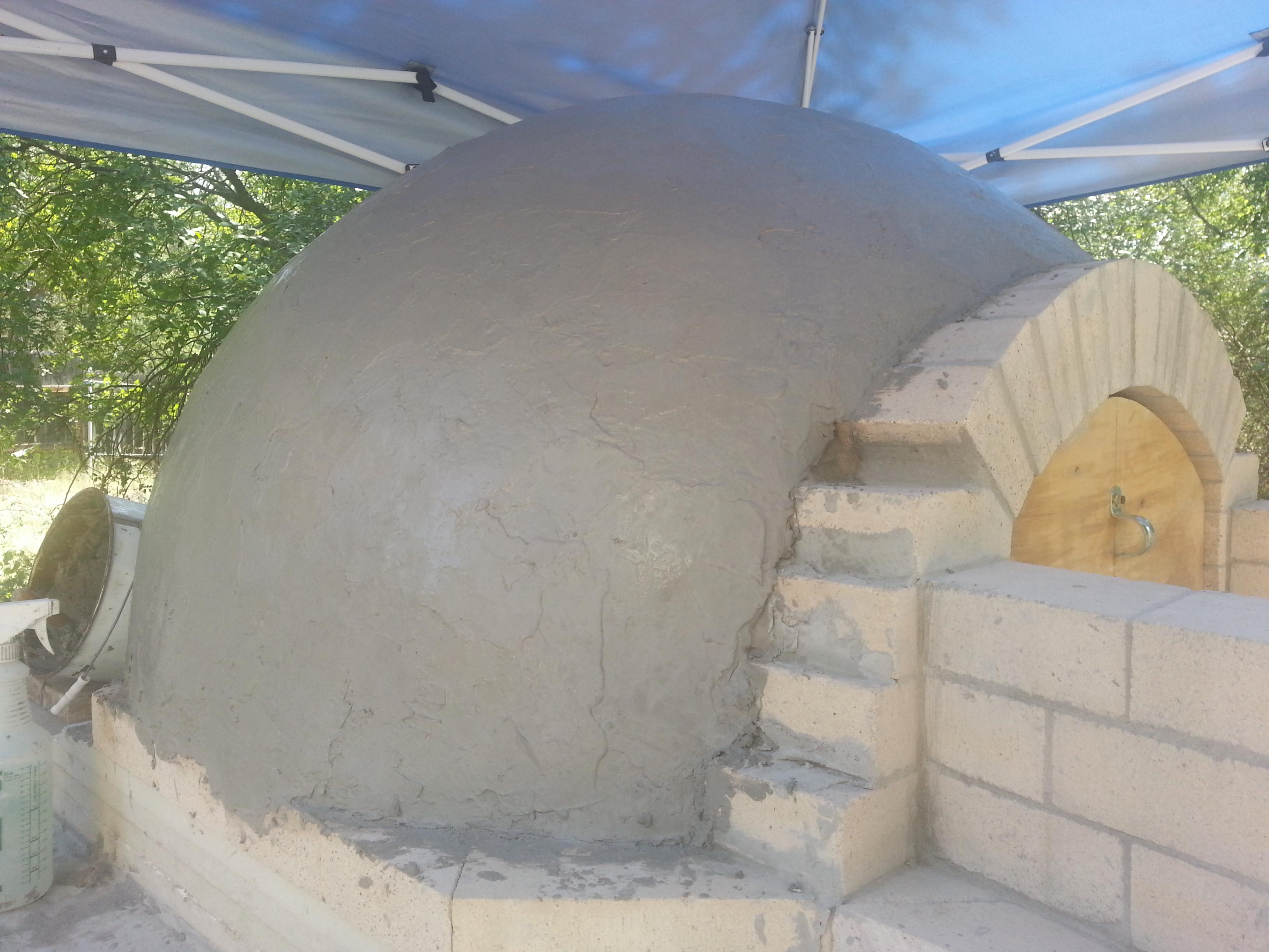 This morning I covered the outside with a premixed refractory cement to clean up the outside of the dome. Its called #36 Refractory Cement. (Tscar said I could) This stuff was a pain, very thick and dense. 3 hrs later it was done. trying to keep it damp in 100 temps.....