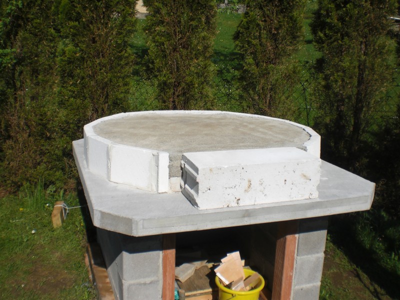 Cement block base is 120cm x 120cm (47" x47") and top slab is 152xm x 168cm (60" x 66"). Height so far is 90cm (35.5").