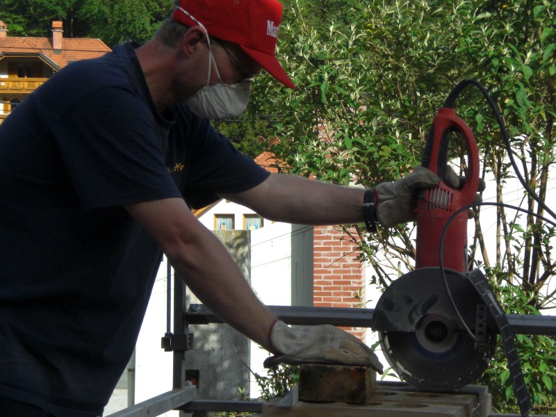.Cement block base is 120cm x 120cm (47" x47") and top slab is 152xm x 168cm (60" x 66"). Height so far is 90cm (35.5").