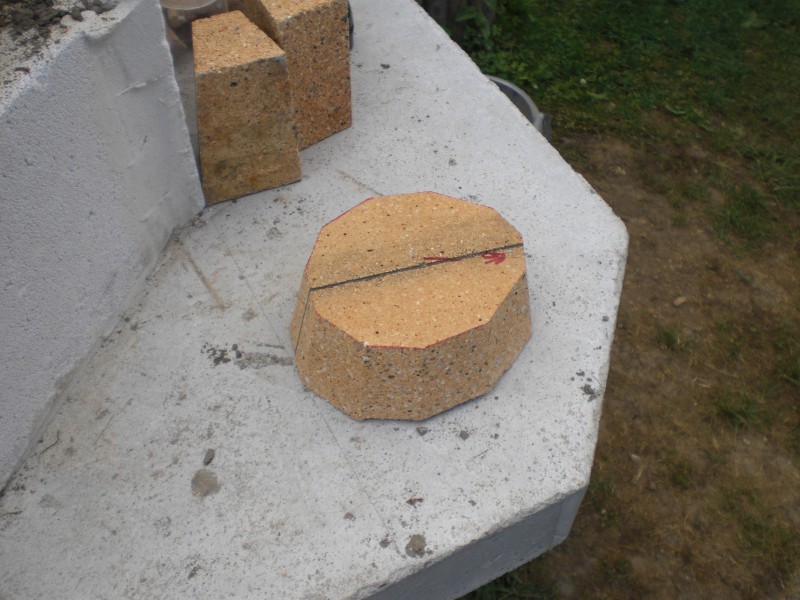 . Can you set a jig to cut 1/2 way, reverse the brick and then cut the other?