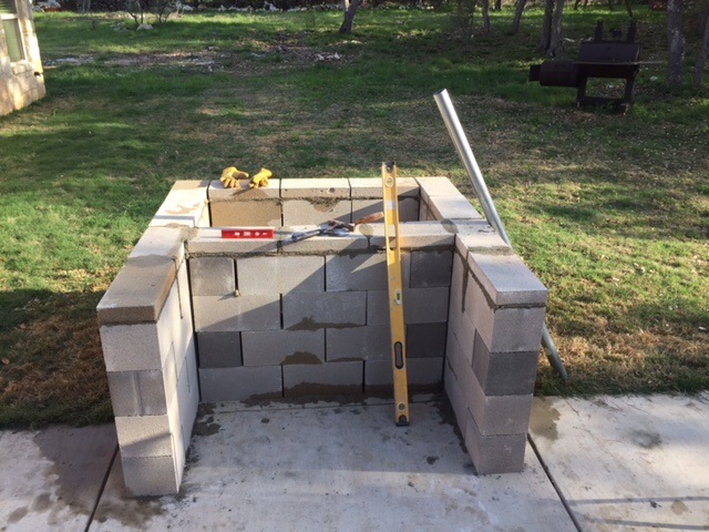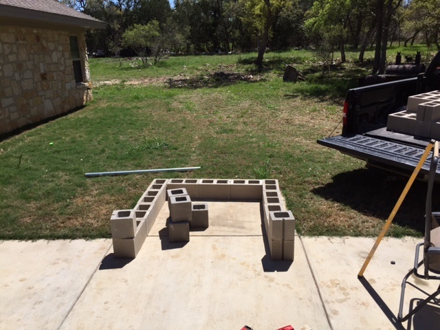 Got started 3 Saturdays ago laying out the dry stack block work. I filled every other core with concrete the following week. I also set the form for pouring the hearthe base slab during that week.