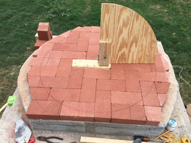 Rain screwed me for this past weekend but was able to cut some brick, lay out the door and install the first chain of brick.