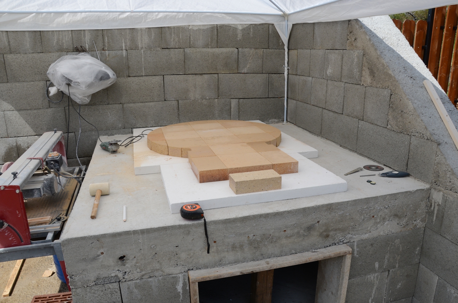 My plan is to build a 39'' oven, with the entrance as a full arch. I have no idea yet on what finish to apply after the insulation. Will decide later. Ideally I want to turn what you see in photo 1 in what you see in photo 2.