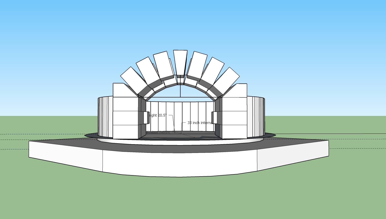 Might have done my math wrong for dome height calculation but I essentially made the assumption that a "half header" installation with 0 floor height would have a dome height which is exactly half the diameter of the interior. (33" * .5 = 16.5). Then what I did was take out 2.5 inches from the floor due to installation of a firebrick herringbone hearth in the internal oven space. (16.5 - 2.5 = 14). Then I added some height because my soldier installation will elevate the dome as compared to a half header installation by 6.5". (14 + 6.5" = 20.5"). I got to 20.5 this way. I'm not sure what different assumption you made or if I made a mistake somewhere.