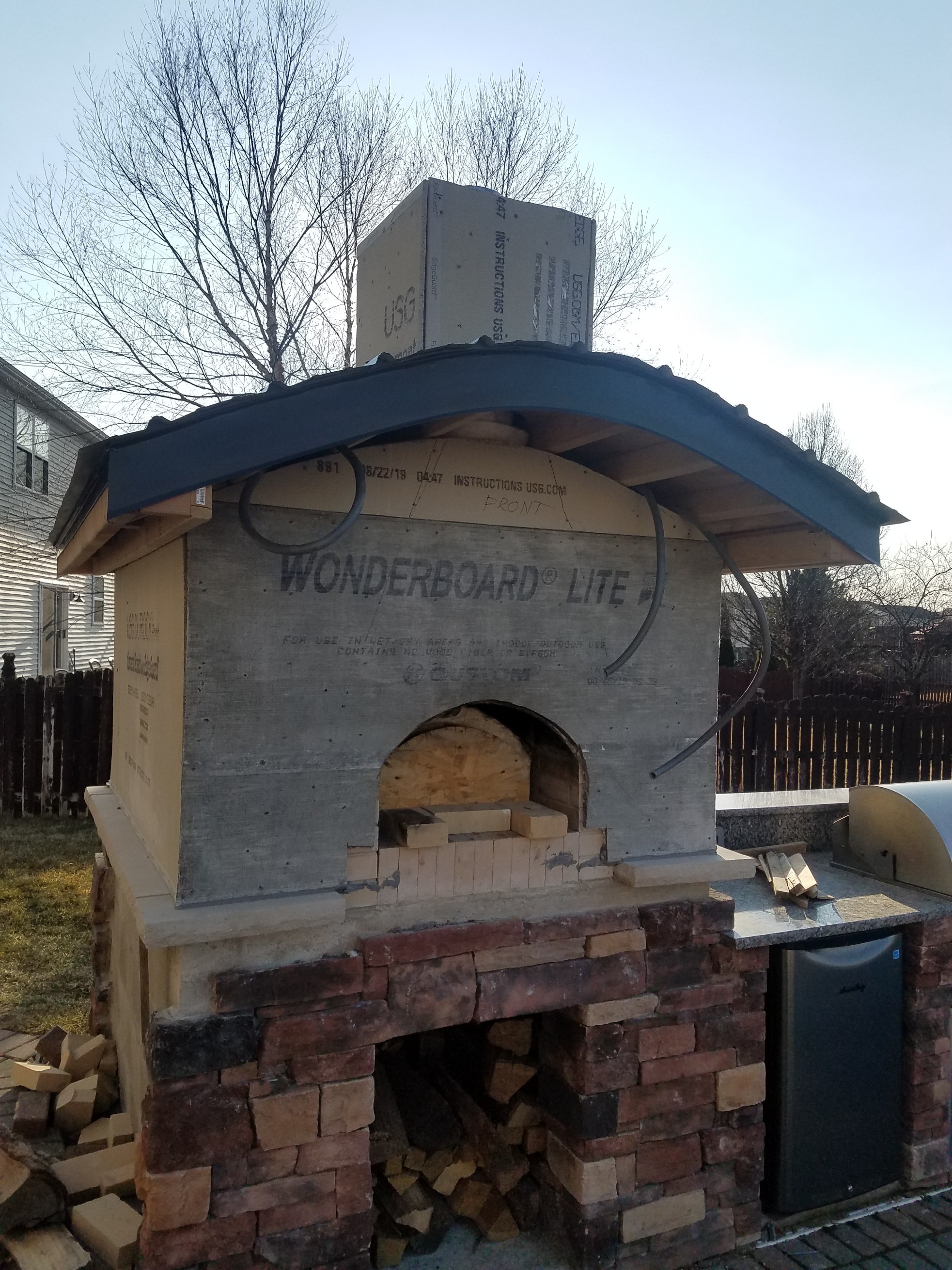 Weather here is not too bad and this weekend is going to be sunny and 60. I'm going to plan and get the roof on my enclosure and hopefully say goodbye to my tarp. I did some pizza on Sunday evening and on Monday evening oven temp was 475 so I cooked 2 whole chickens. Tuesday I wasn't home to measure temps but on Wednesday the oven temp was 215. The oven is retaining heat pretty good and I can probably get at least 2 more cookings out of the retained heat so I'm extremely happy with that. I hope to post pics of the roof soon.