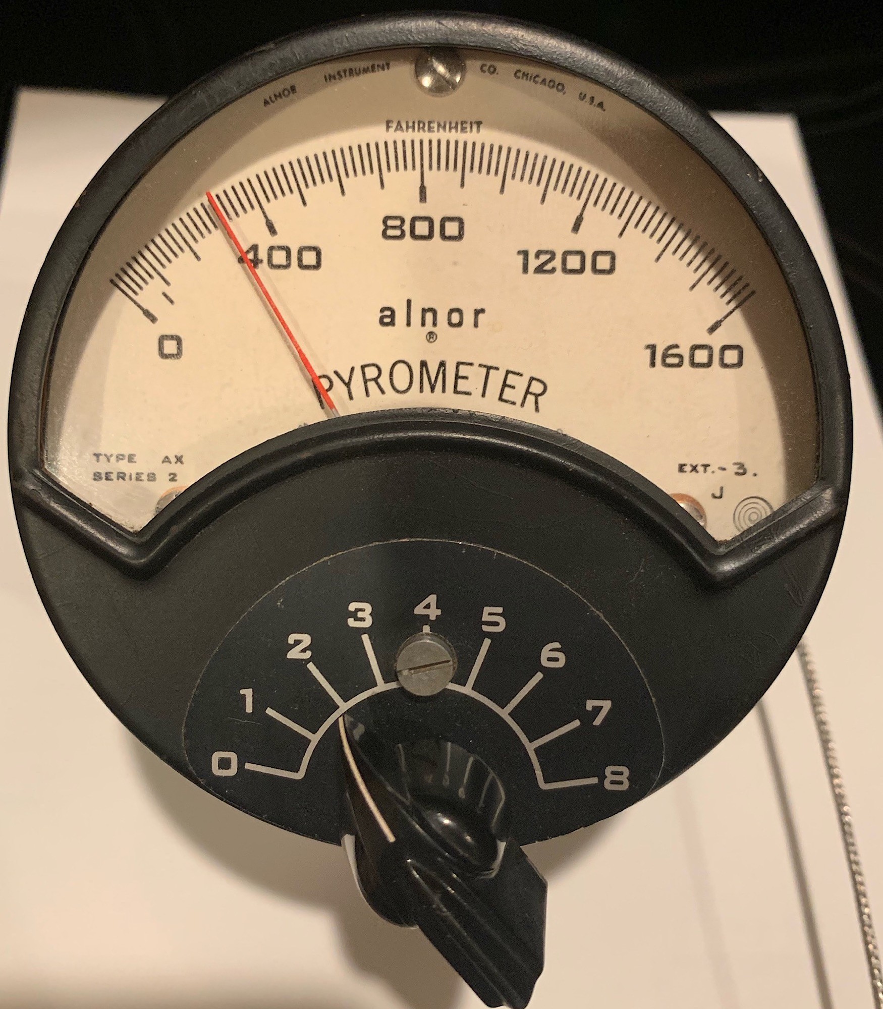 The pyrometer is 8 channels and was new in the 50s (I think). I tested it last night with a k thermocouple and it’s fairly accurate. A modern digital version would be easier, but I like the look. Googling pictures of ovens, I came across someone that used the same model. I found this one on eBay.