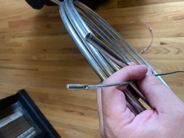 i picked up some 3/8” stainless tube that is normally used as fuel line. I’ll use this as a conduit and insert one end in bricks throughout the oven and in the insulation. I checked and I can push the thermocouple through 180 degrees, so I shouldn’t have a problem down the road. A fish tape may be needed in the future if something corrodes or blocks up the pipe.