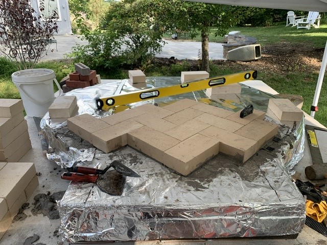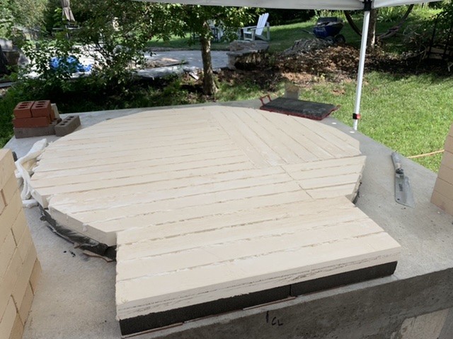 Nice job laying out ahead of time. I did a lower dome and didn't find it hard at all other than figuring out how to properly create an modify my IT as you need a variable length and angle for each course. Several ways to do that, but I used a wood template to set the IT for each course. While you have your layout, just be sure you have turned whatever your dome pattern is forward against the inner arch and ensure your inner arch bricks extend fully into the oven space (for cutting off) to avoid the mistake I made: I cut my inner arch bricks too short and made a little dome void above my inner arch, which is now a "unique characteristic" of my build. Regarding flue area, after reading from other builds and flue design papers, etc I decided to make my entrance slightly longer than I was thinking, but not much for access. I was planning on coming down from my doorway just a tad, but my final design now just has a a very wide and large flue area, which I have yet to build, so I can't give any real world feedback myself. Look forward to watching your build progress further! Keep up the good work! Great auction find!