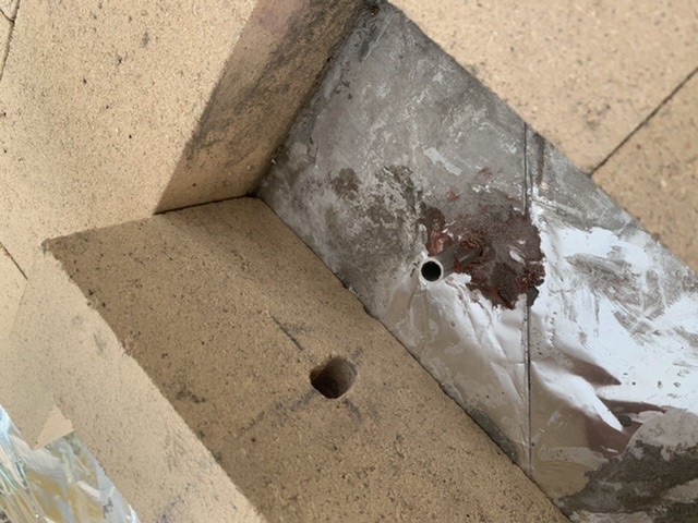 I have 2 of my stainless tubes placed and firecaulked in. Drilling a 1” hole in the back of the bricks to receive the tube and thermocouple was pretty easy.