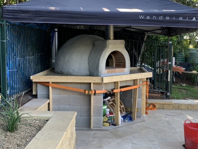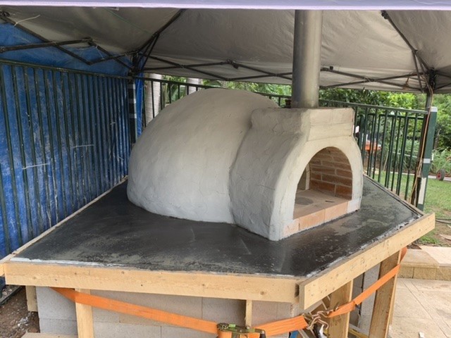 Have also been very careful not to get the oven wet. I decided to do my curing fires once my perlite layers went on.