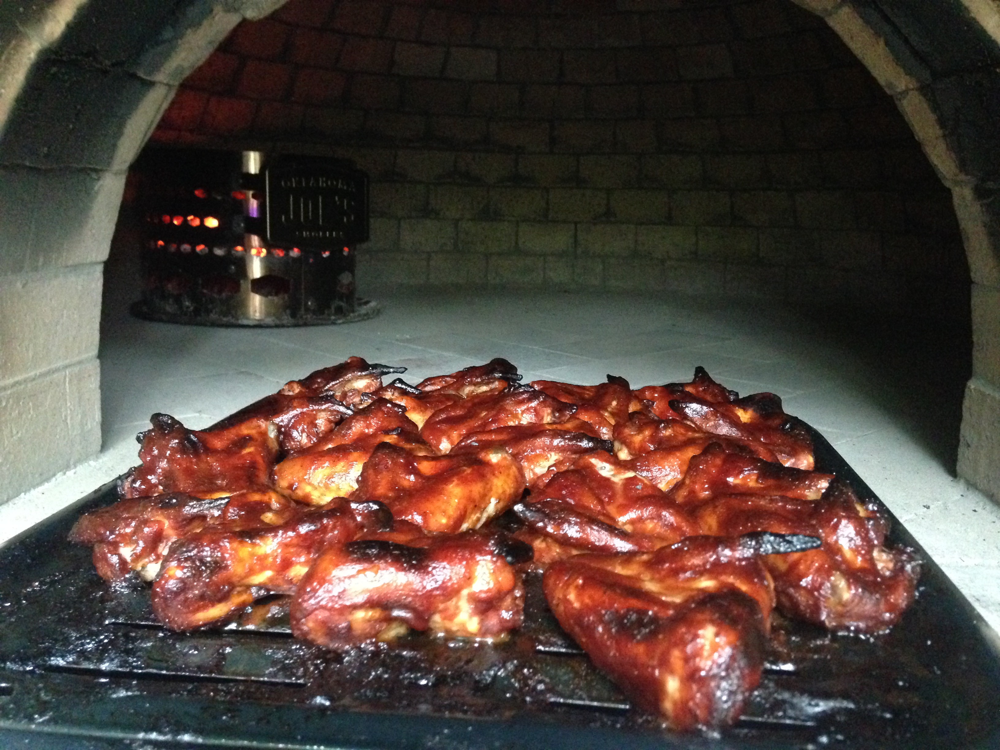 For the wings above, the oven was probably about the same temp. I cook chicken hot and fast. I started about half a chimney starter full and placed it in the oven with the wings and the door partially open. I probably rotated the broiler pan a couple of times for an even cook. I have a 44" oven. Your mileage may vary