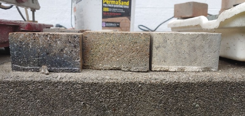 As I'm saw cutting these they appear to be very different. The "white" bricks cut easier than the other 2 colors and I think that they weigh slightly less. (I didn't put them on a scale, but they don't feel as heavy).