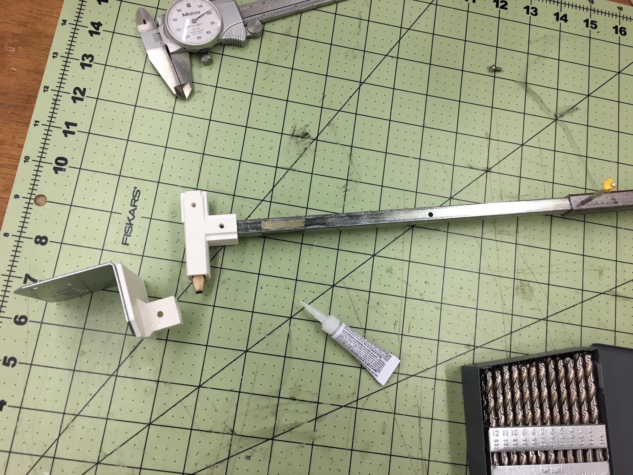 Thanks for your comments, UtahBH.... I've read many times your comments in other posts about the benefits of making the IT adjustable. So I heeded you're advise. The bottom leg is square tube, the upper leg is square rod, so the upper telescopes into the lower. I think I'd be better with a treaded feature for adjustment, but what I have should work okay (hopefully). From the attached photo you can see I made a couple of interchangeable fixtures. One to hold the pencil, which has two fitting orientations, one holding pencil perpendicular to rod, the other in line with rod. This can be swapped out for the fixture that holds the brick with the centerline of rod in line with centerline of fixture and centerline of brick..so thanks for the direction with that.