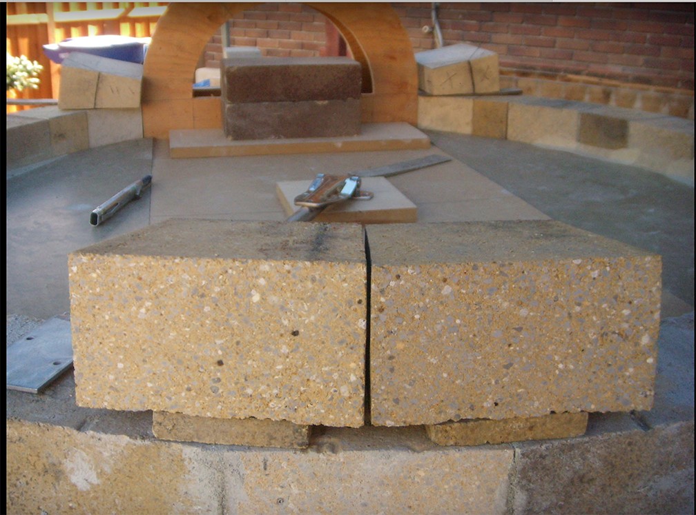 I did not leave shim in, it was for fitting and picture purposes only. Notice that I did full bevel and taper cuts for tight fitting vertical joints. It takes a lot of time and resources plus I was working with super duty 65% Alumina bricks. If I were to do another oven I would not go to this effort, only do a bevel near the interior of the dome to eliminate the inverted "V" joint and let mortar fill in the backside and use my time and resources elsewhere.