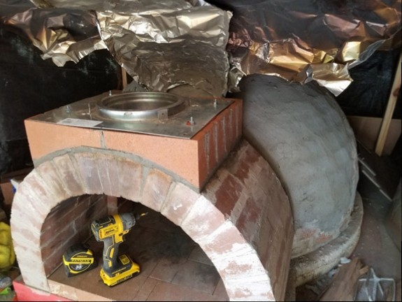 I had to look back on my pictures to jog my memory - there were 3 reasons I built it the way I did. I needed both a square shape for the adapter plate (which took a few courses to transition to) and I needed to carve out some of the last layer to accommodate the downward flange/protrusion of the adapter (see pic 1). Secondly I used a thru-bolt method of attaching the adapter and didn't want to be drilling on the main structure of my serpentine vent, and lastly I thought it gave it some symmetry when looking from the front having the third layer match the bottom curved pieces in terms of the center joint, and then adding a crown forth layer that matched the middle. My whole chimney was sort of a "tale that grew in the telling" (to borrow from Tolkien) in that I really was not sure how it was going to turn out when I started. I might even have gone higher but I was worried about how much weight my vent arches could carry. I had not thought about draw as I knew I had plenty of pipe to put above the chimney, but in retrospect I think the generous opening and curve really allows the oven to "breathe".Last edited by JRPizza; 04-08-2022, 08:24 AM.