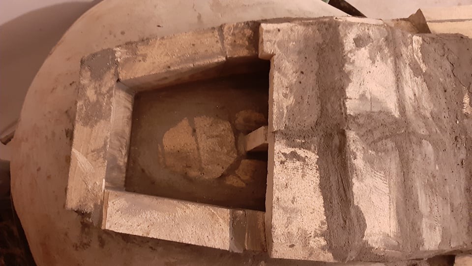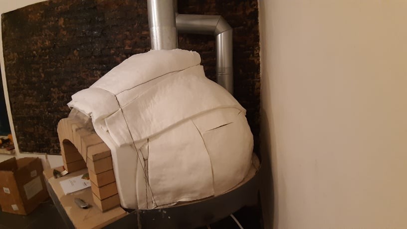 Since I have a bit insulation material left I will put a 3rd layer on the upper part of the oven.