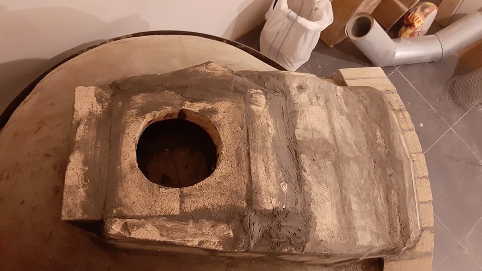 Now i'ts only about mounting the pipe. I think I have found a good solution. Since I have a double wall "home-made" pipe the inner pipe will go into the whole which you see. The outer wall will be on the bricks. Additionally the outer Pipe will be held by a slightly bigger pipe which I will (somehow) attach to the bricks.