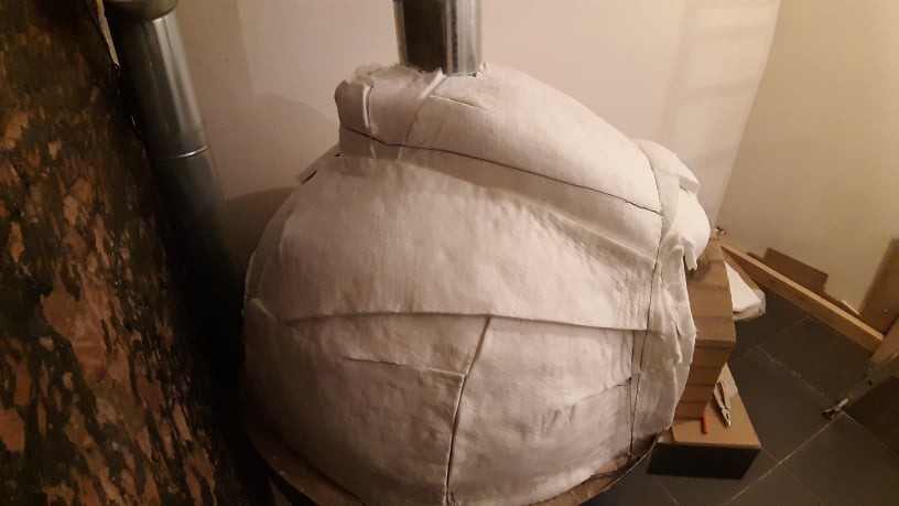 I have burnt the oven for about an hour during the past few days. Therefore I built a provisional heat shield since the flame is not in the middle. Today I started to add the insulation.