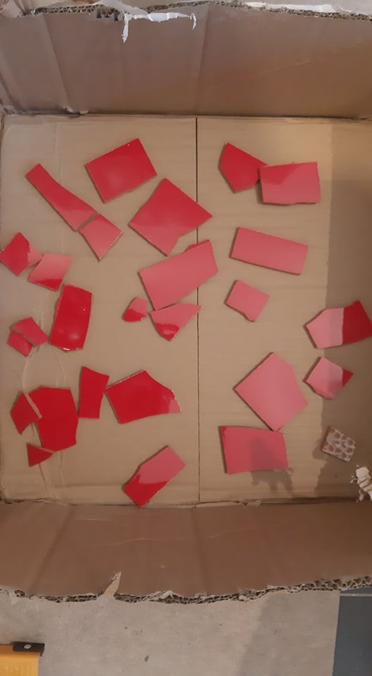 I bought red tiles, will crack them and then place as the last layer. Before there will be plenty of Cement/Perliti Mix.