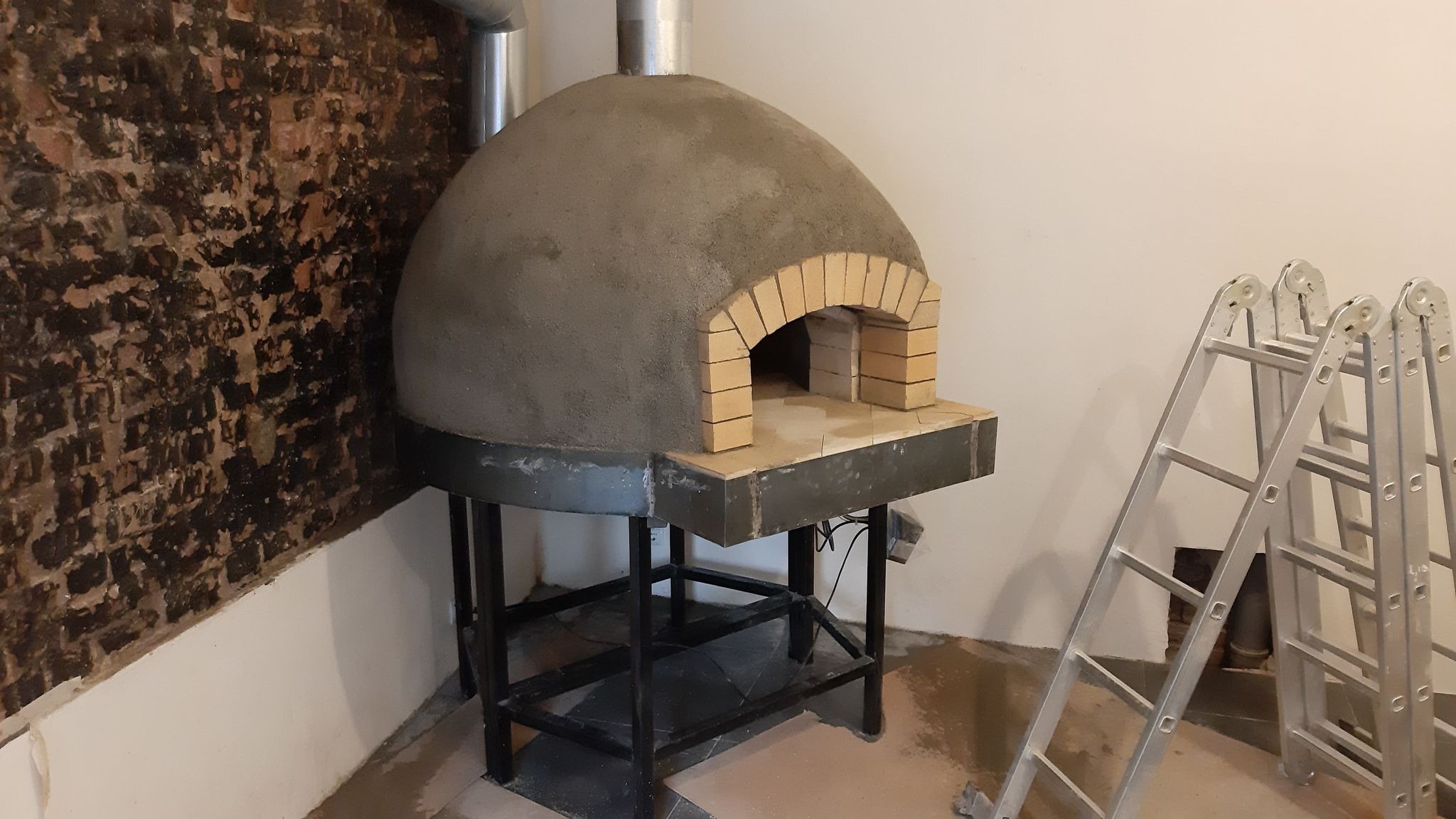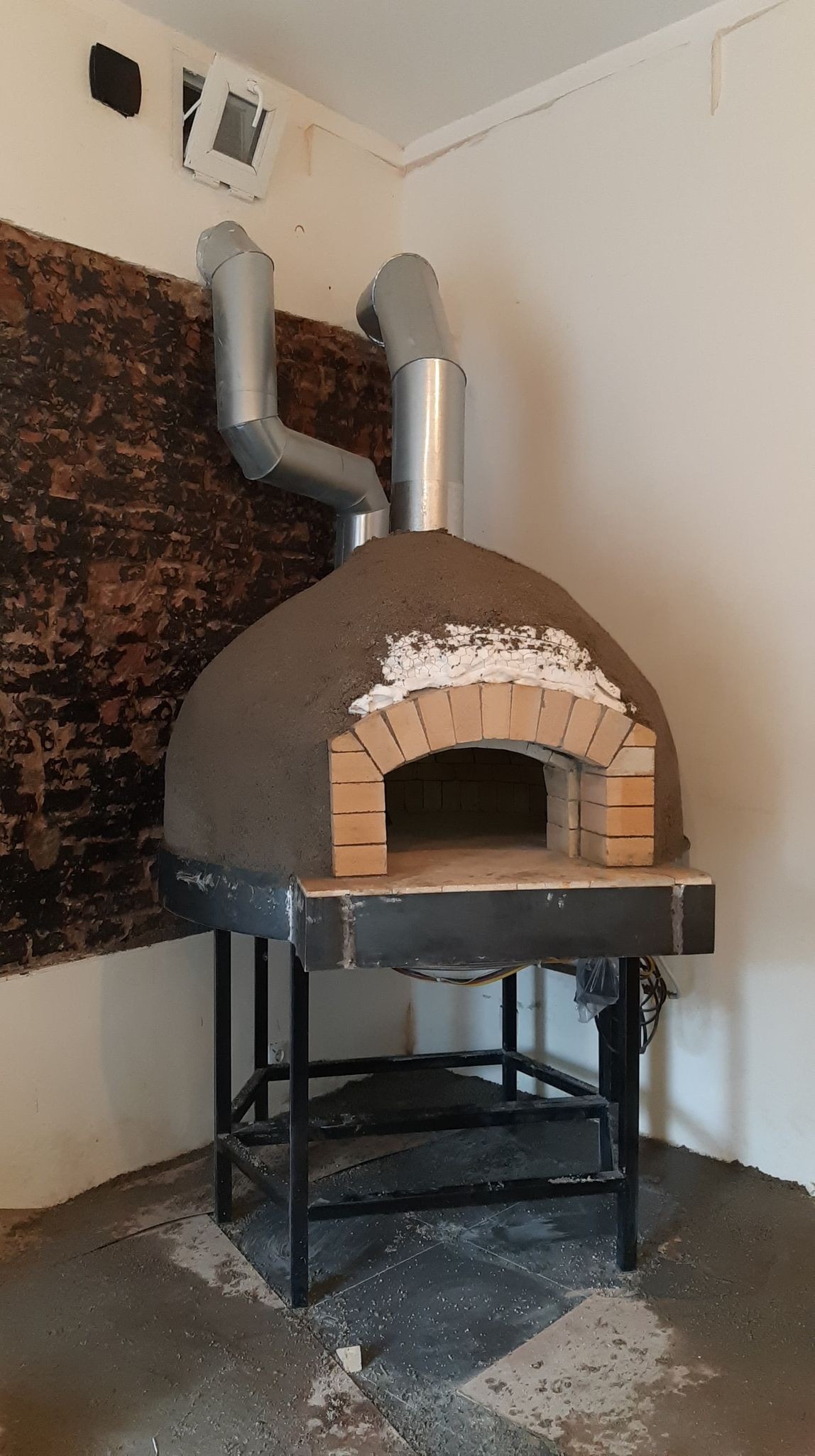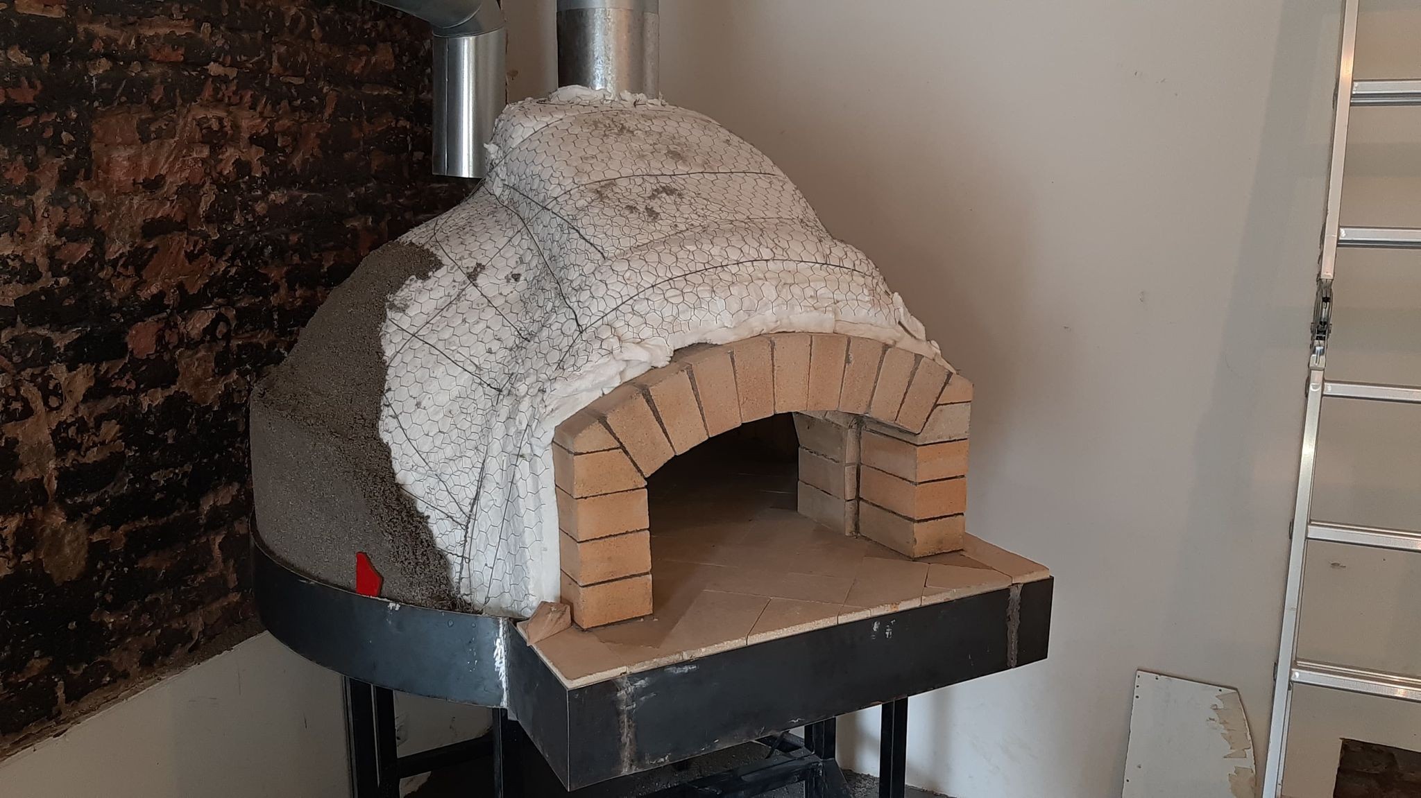 Here a picture from the oven door in the process, before I stuffed it with ceramic fibre board.